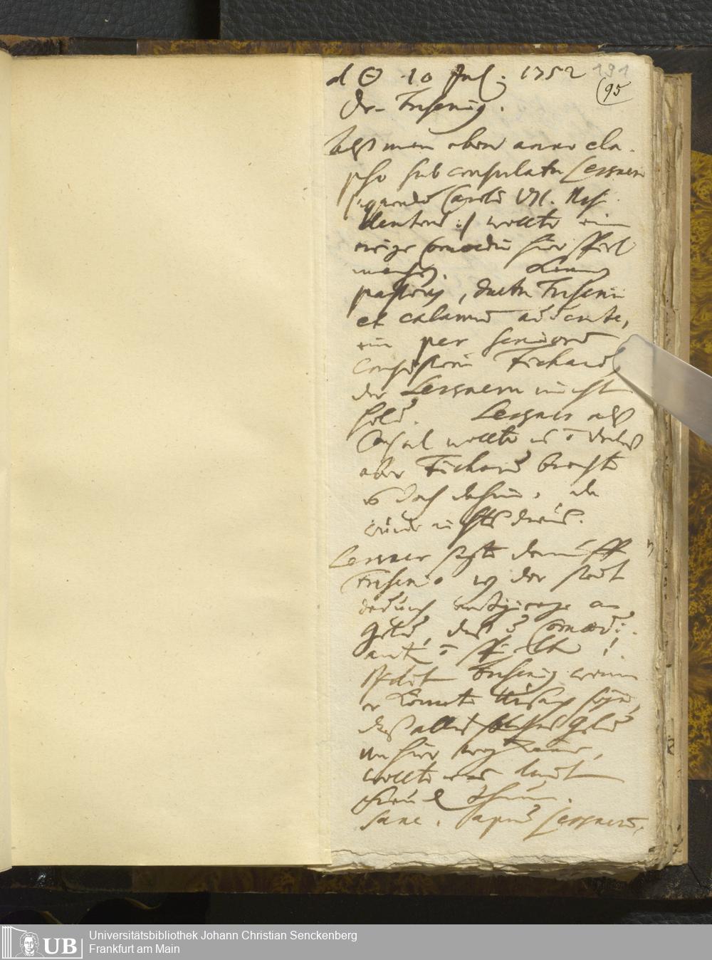 [Nicht-ärztliches Tagebuch: Juni - Dezember 1752]