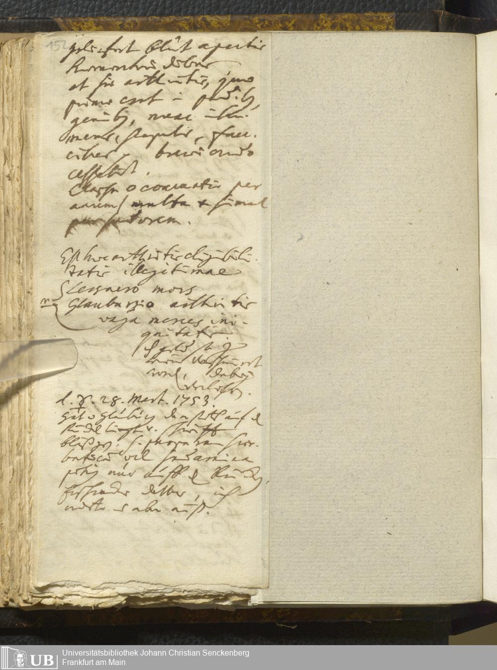 [Ärztliches Tagebuch: Januar - Juni 1753]