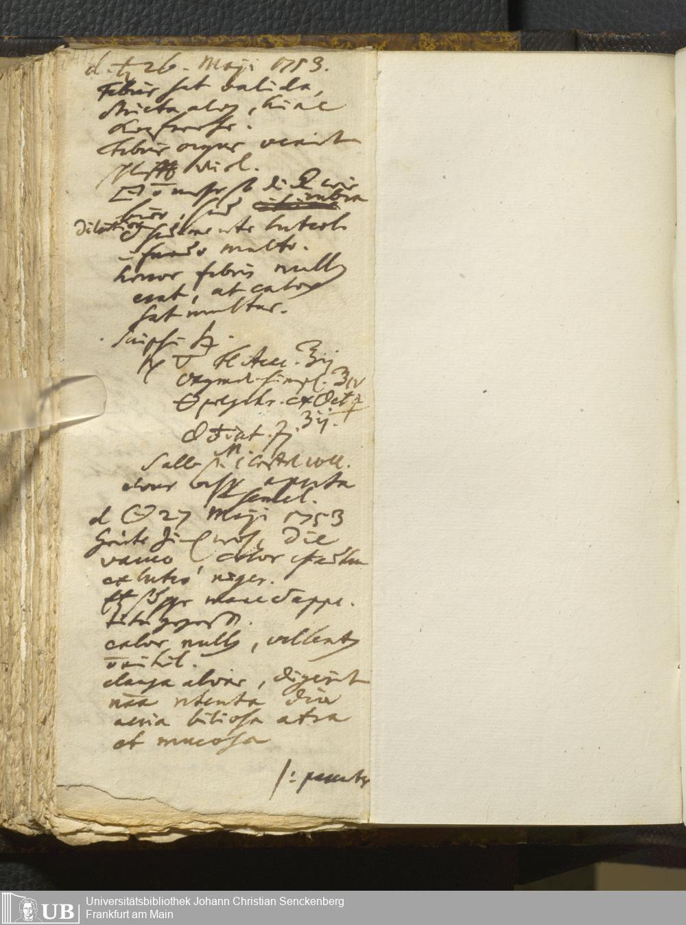 [Ärztliches Tagebuch: Januar - Juni 1753]