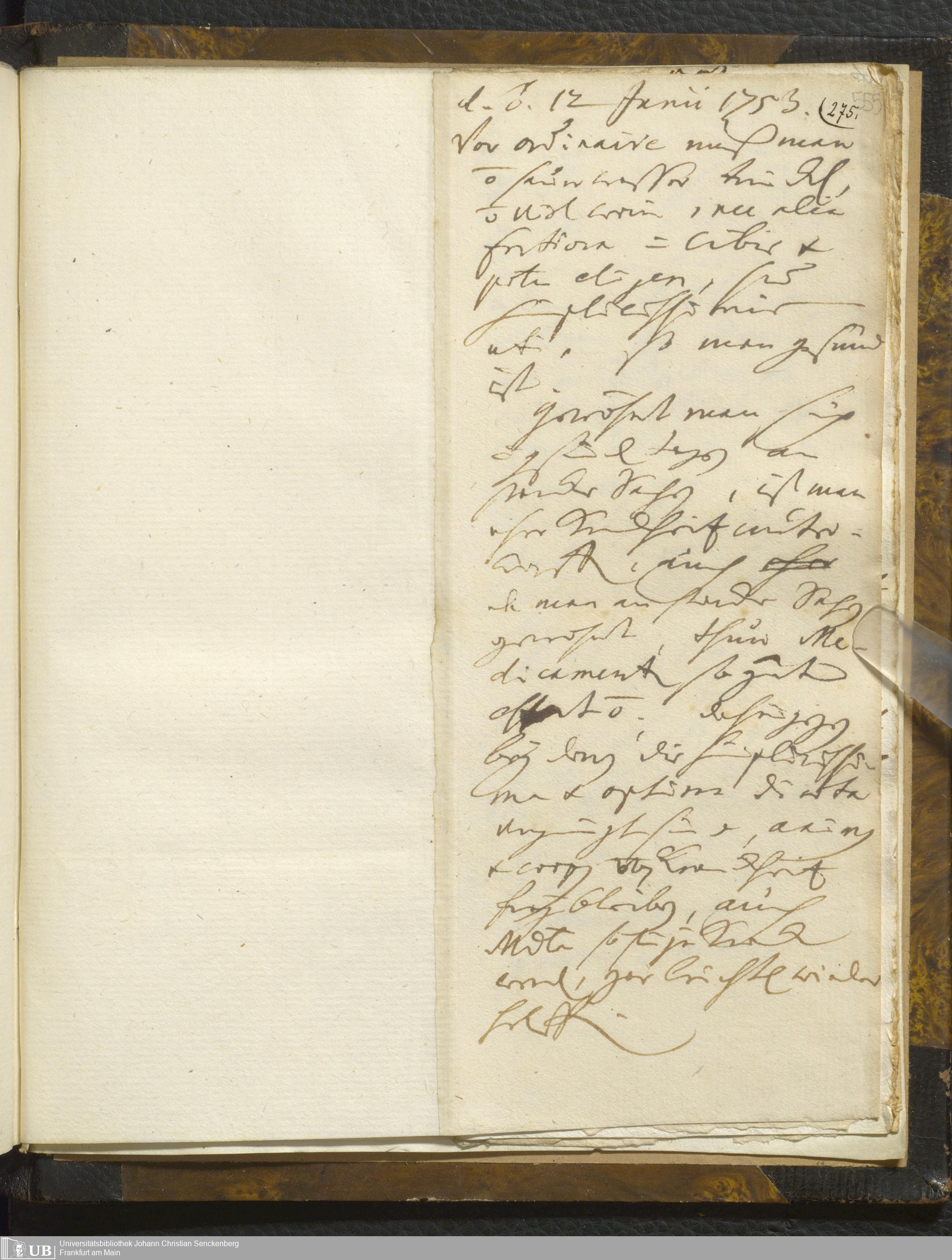 [Ärztliches Tagebuch: Januar - Juni 1753]