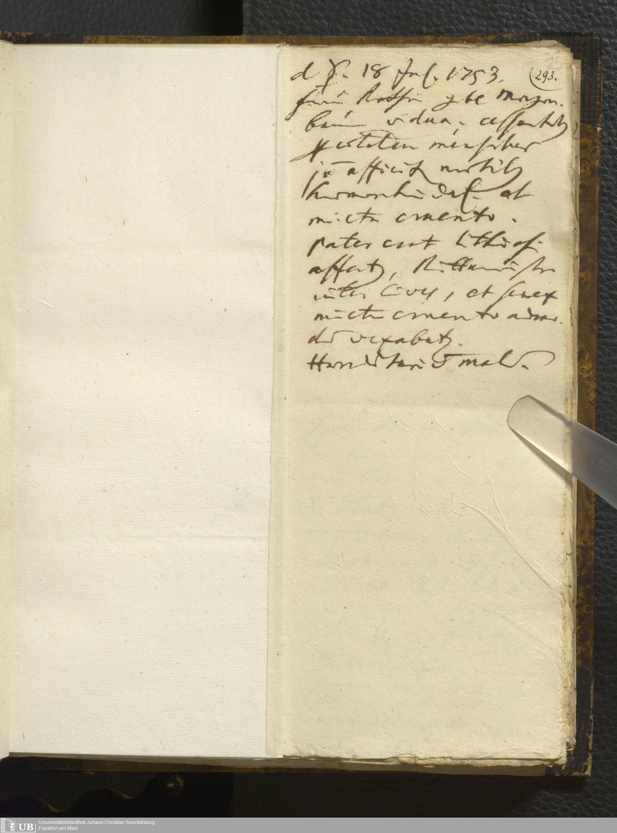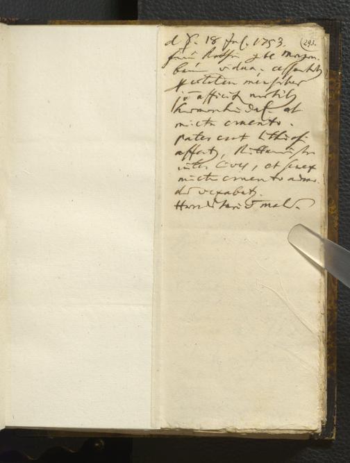 [Ärztliches Tagebuch: Juli - Dezember 1753]