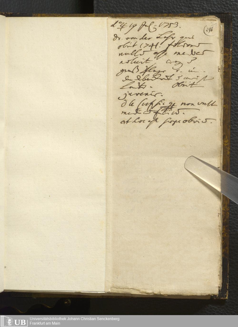 [Ärztliches Tagebuch: Juli - Dezember 1753]