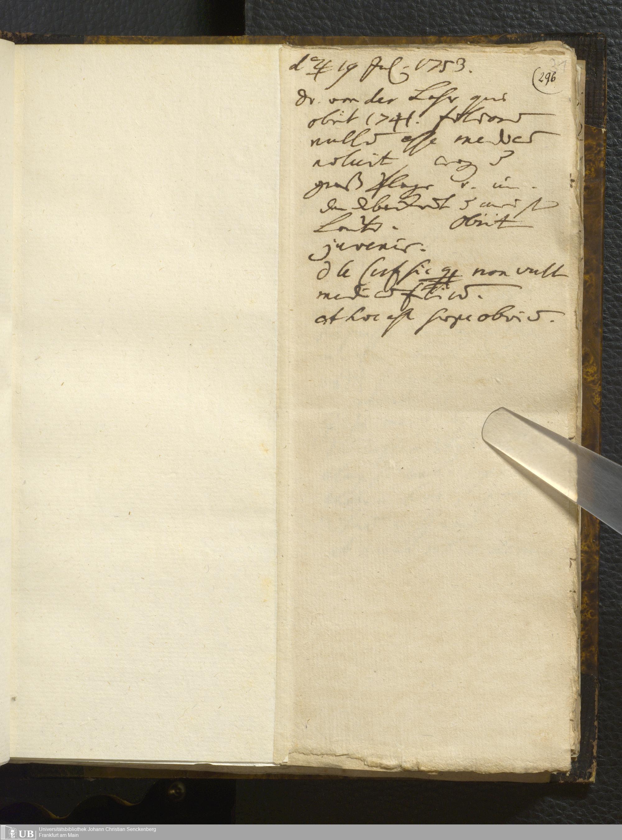 [Tagebücher Johann Christian Senckenberg (1707-1772)]