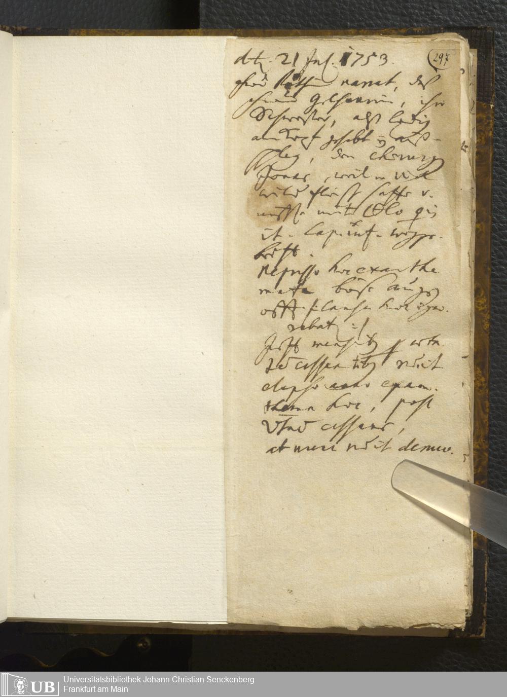 [Ärztliches Tagebuch: Juli - Dezember 1753]