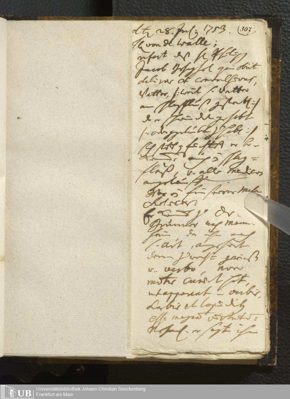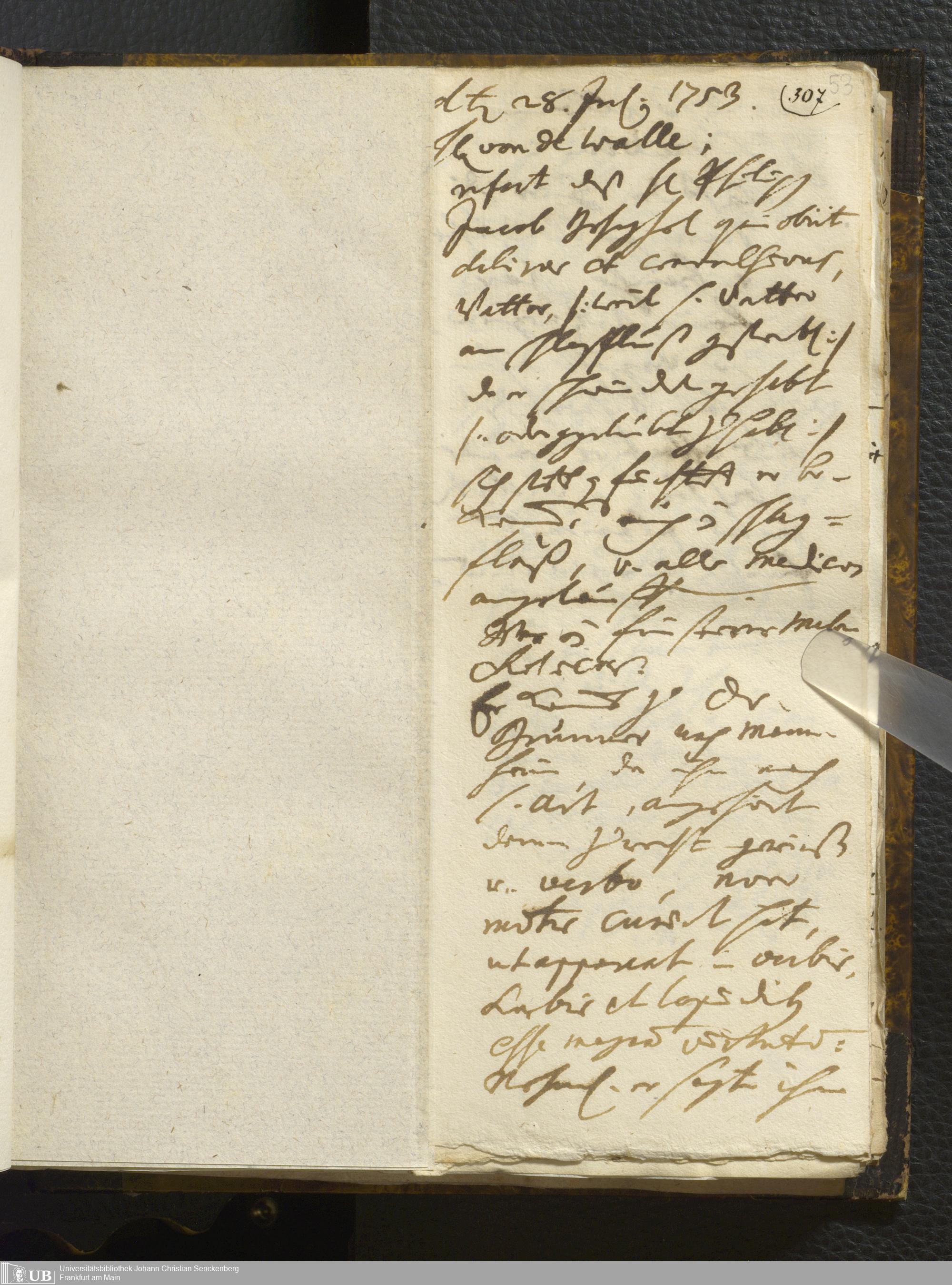 [Ärztliches Tagebuch: Juli - Dezember 1753]