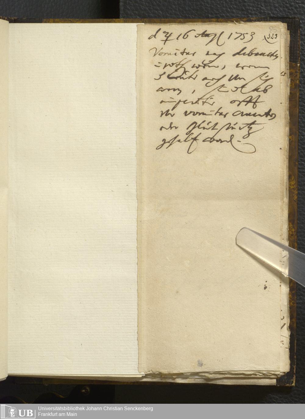 [Ärztliches Tagebuch: Juli - Dezember 1753]