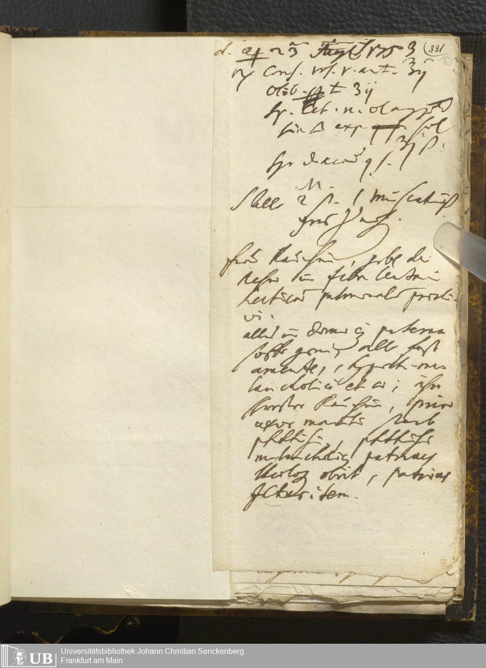 [Ärztliches Tagebuch: Juli - Dezember 1753]