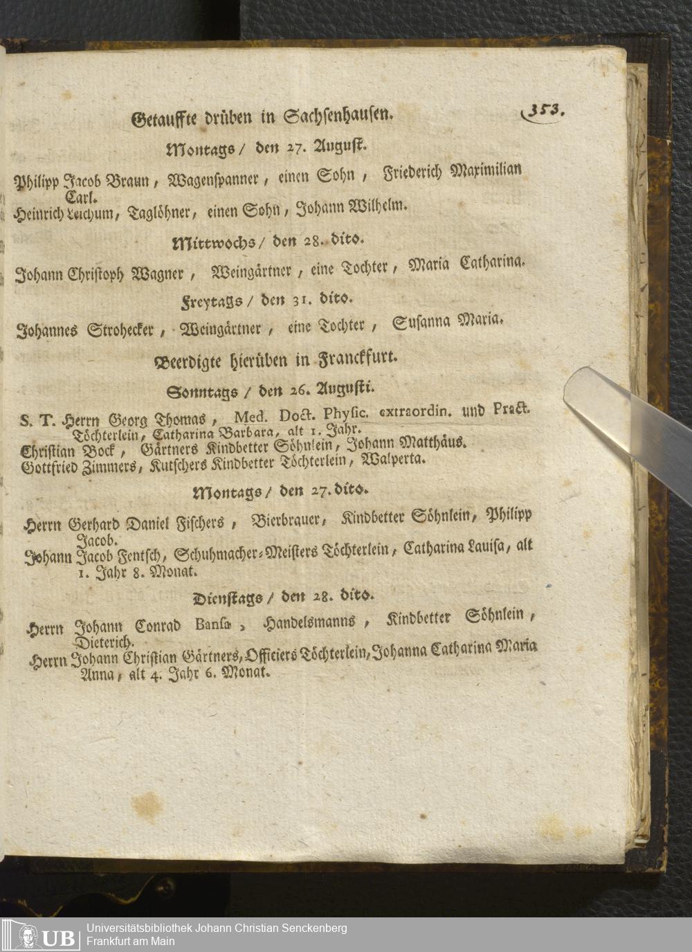 [Ärztliches Tagebuch: Juli - Dezember 1753]