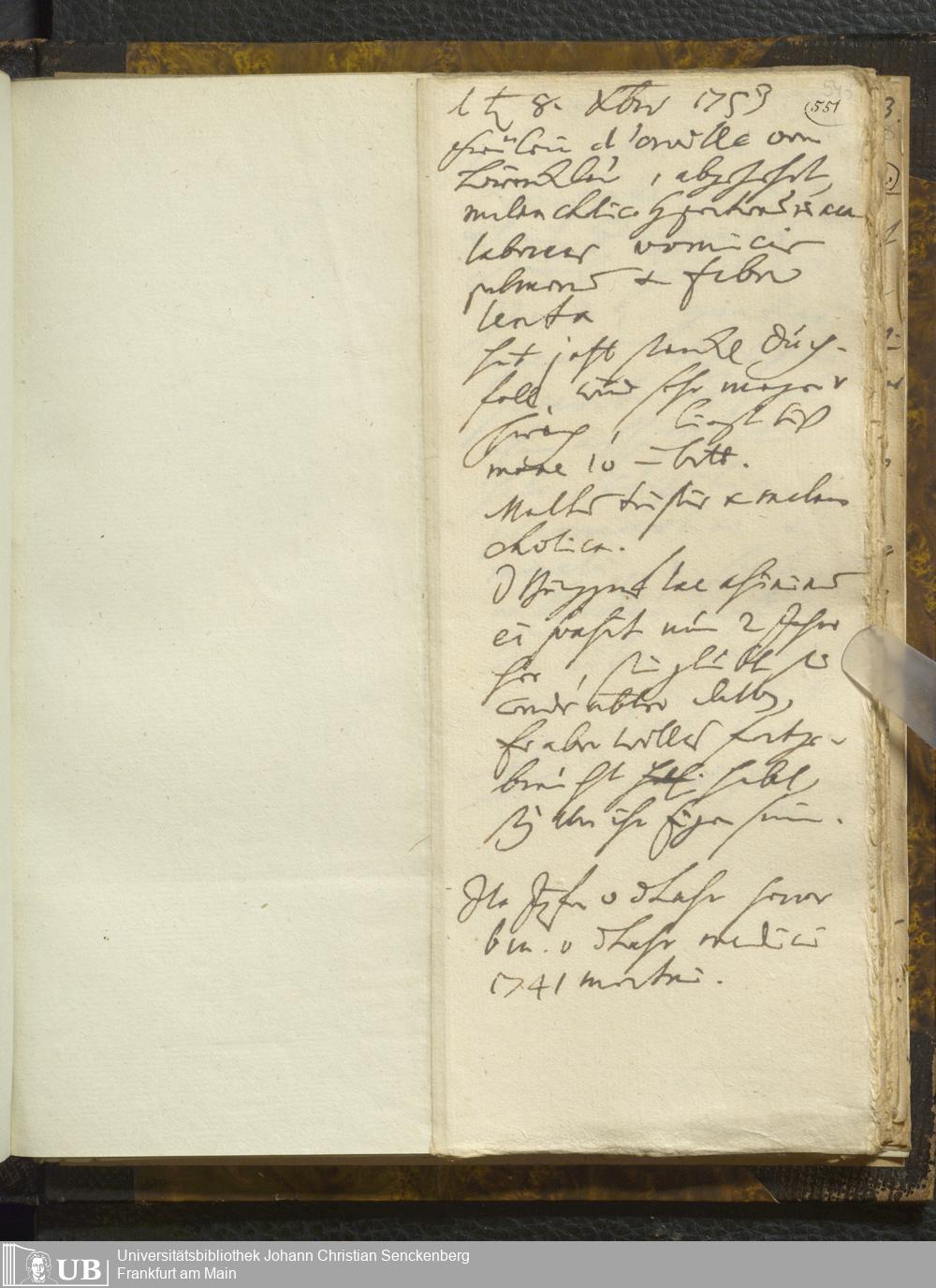 [Ärztliches Tagebuch: Juli - Dezember 1753]
