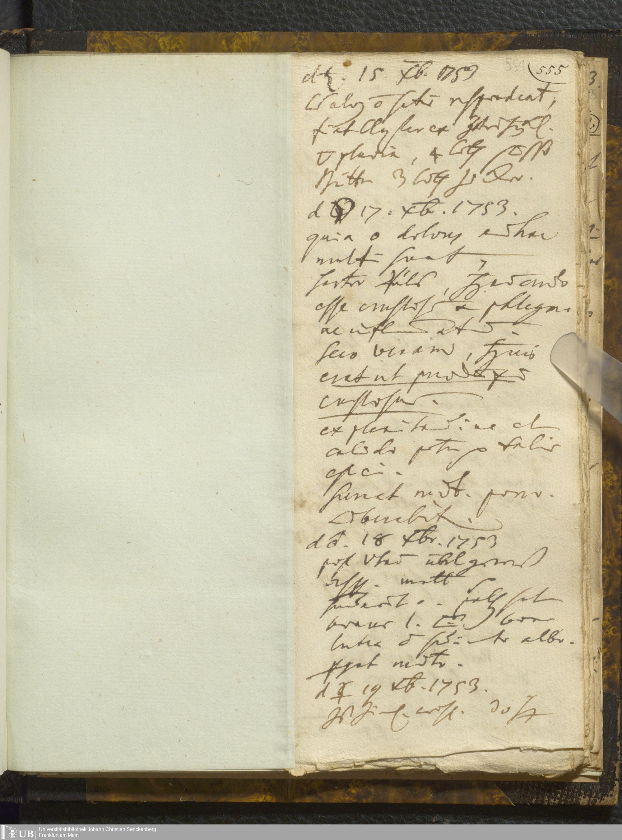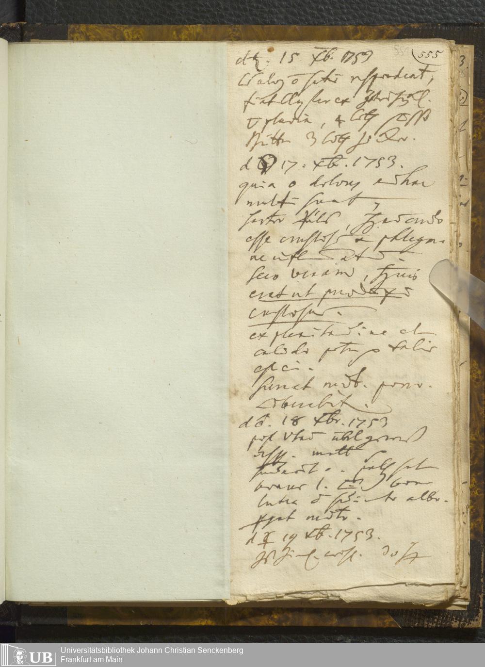 [Ärztliches Tagebuch: Juli - Dezember 1753]