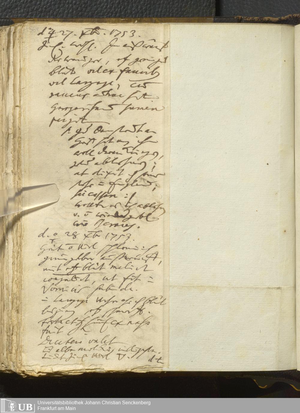 [Ärztliches Tagebuch: Juli - Dezember 1753]