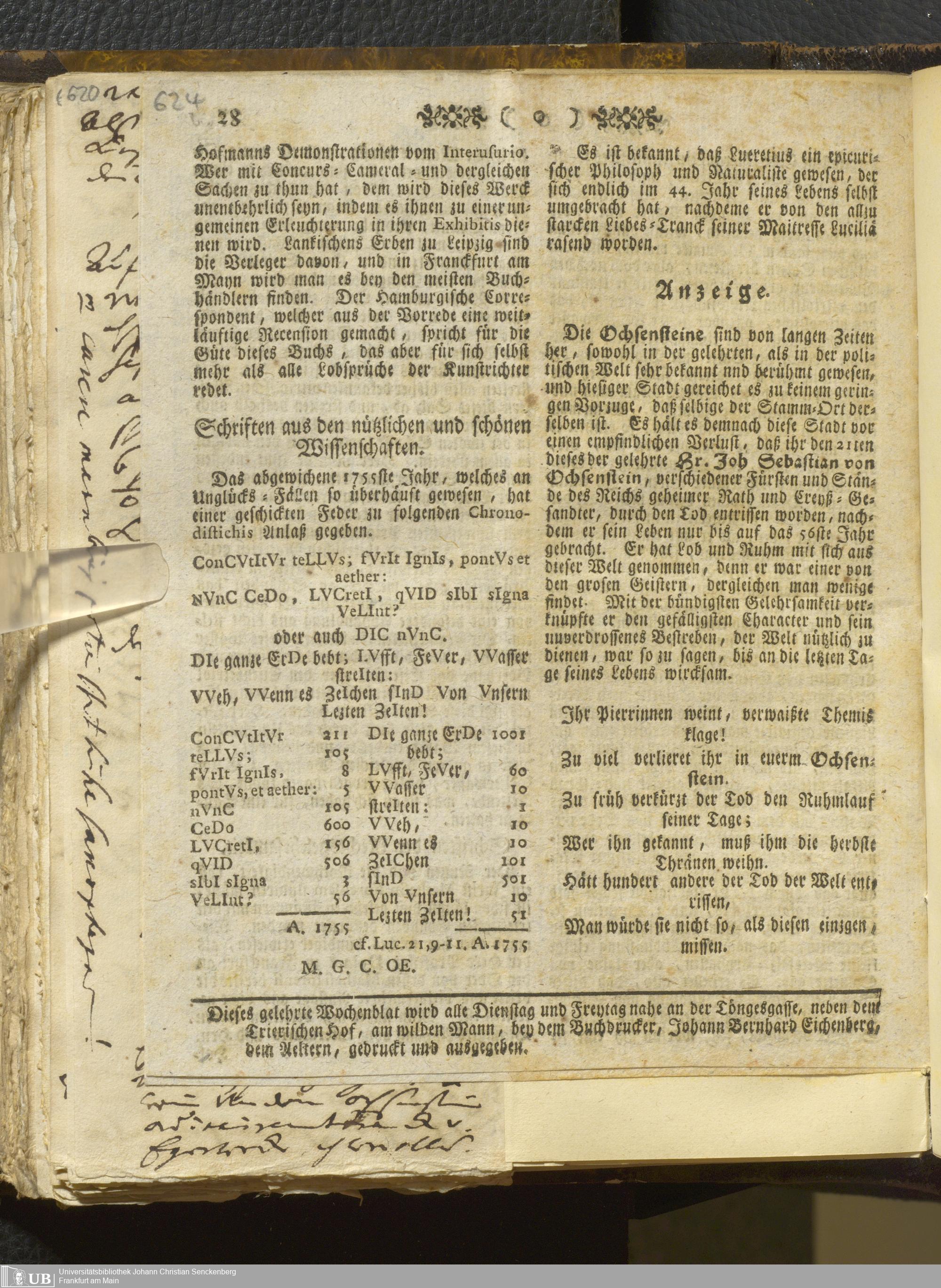 [Tagebücher Johann Christian Senckenberg (1707-1772)]