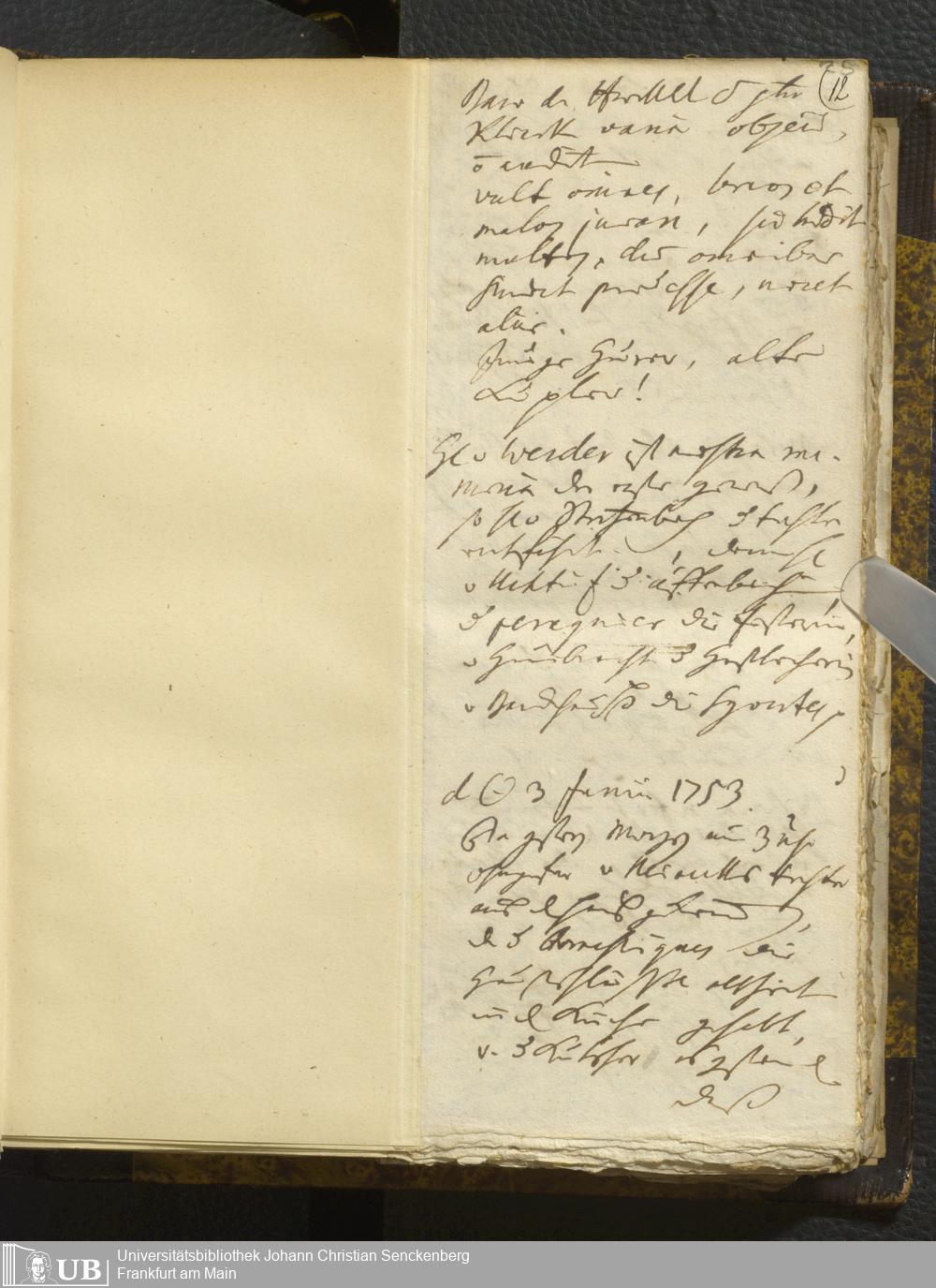 [Nicht-ärztliches Tagebuch: Juni - Dezember 1753]