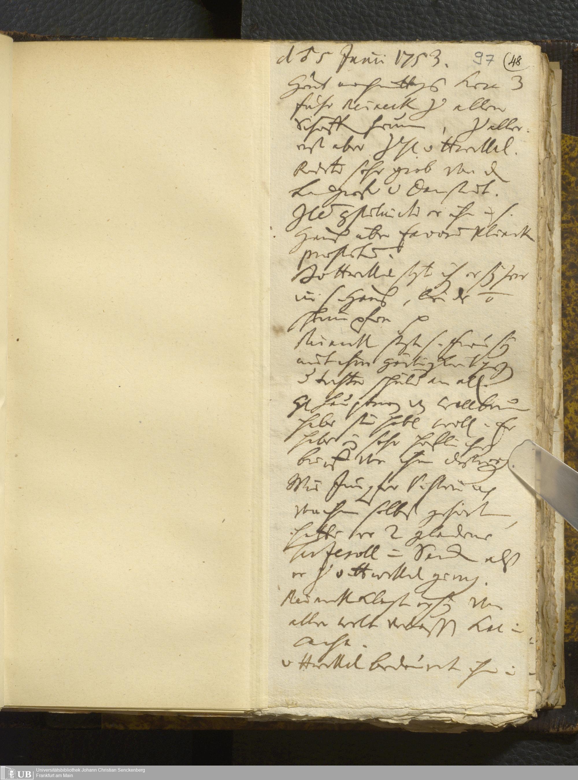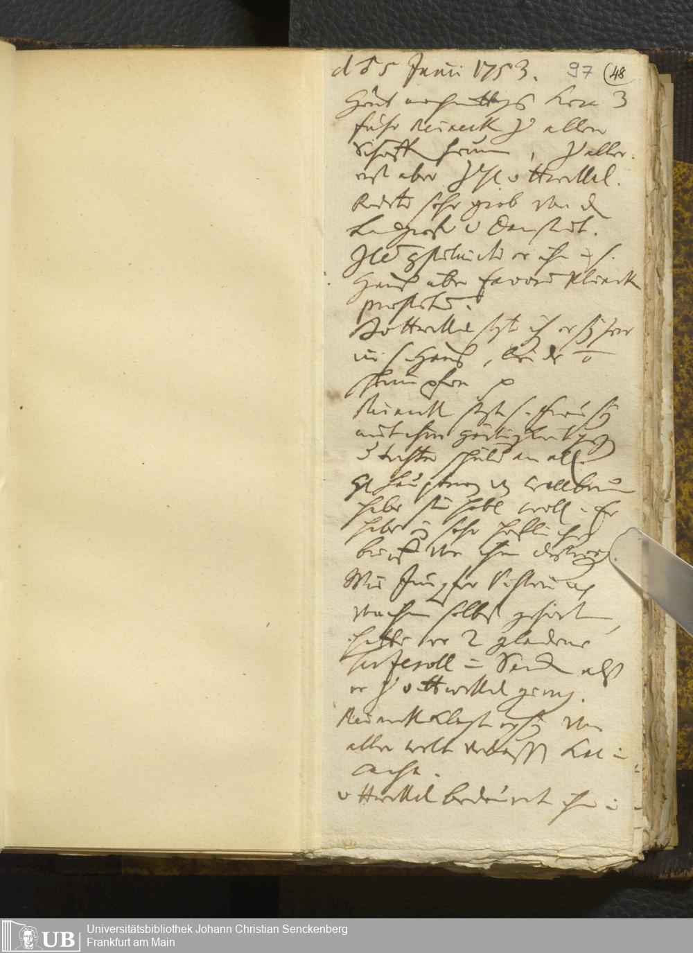 [Nicht-ärztliches Tagebuch: Juni - Dezember 1753]