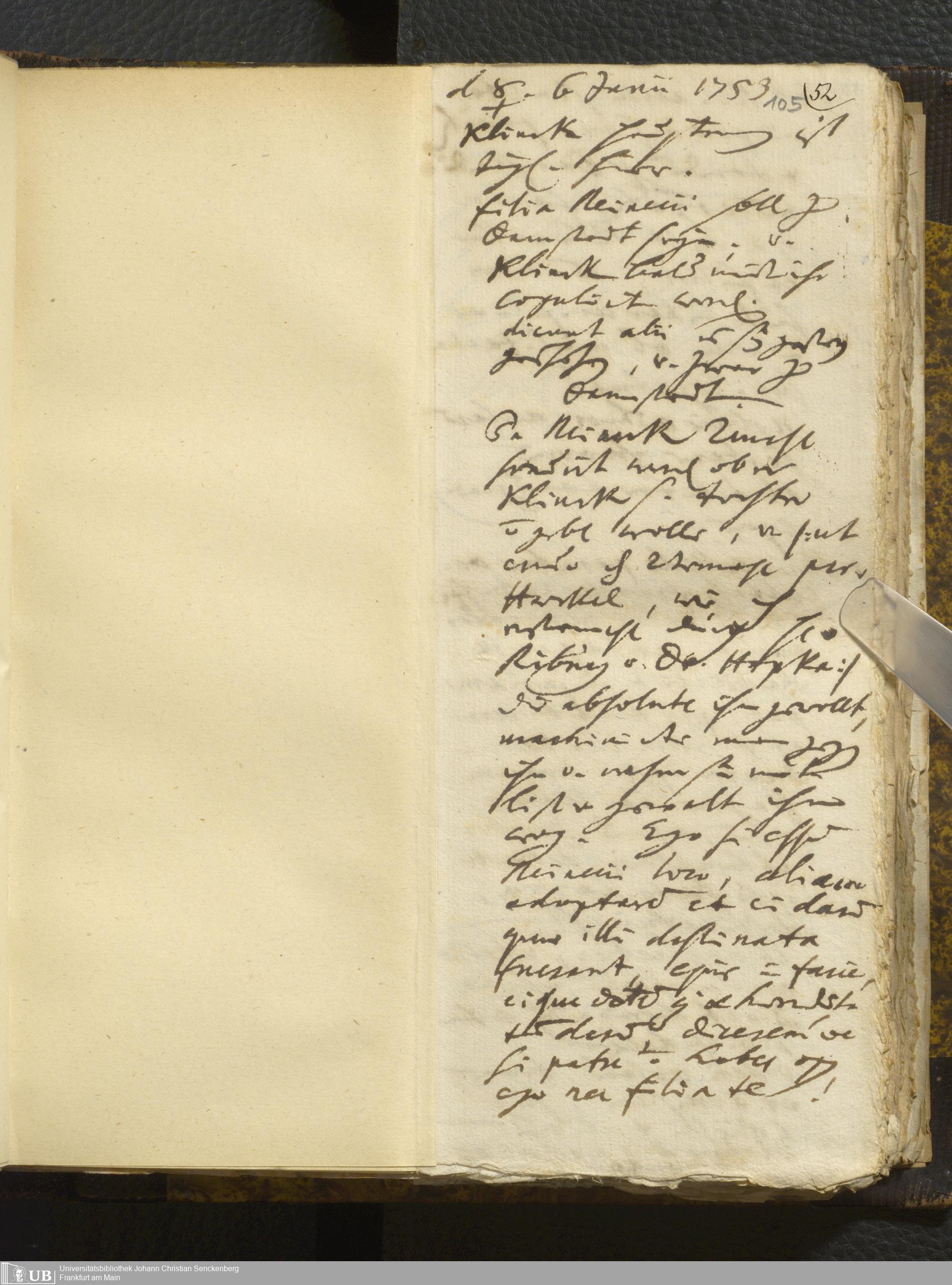 [Nicht-ärztliches Tagebuch: Juni - Dezember 1753]