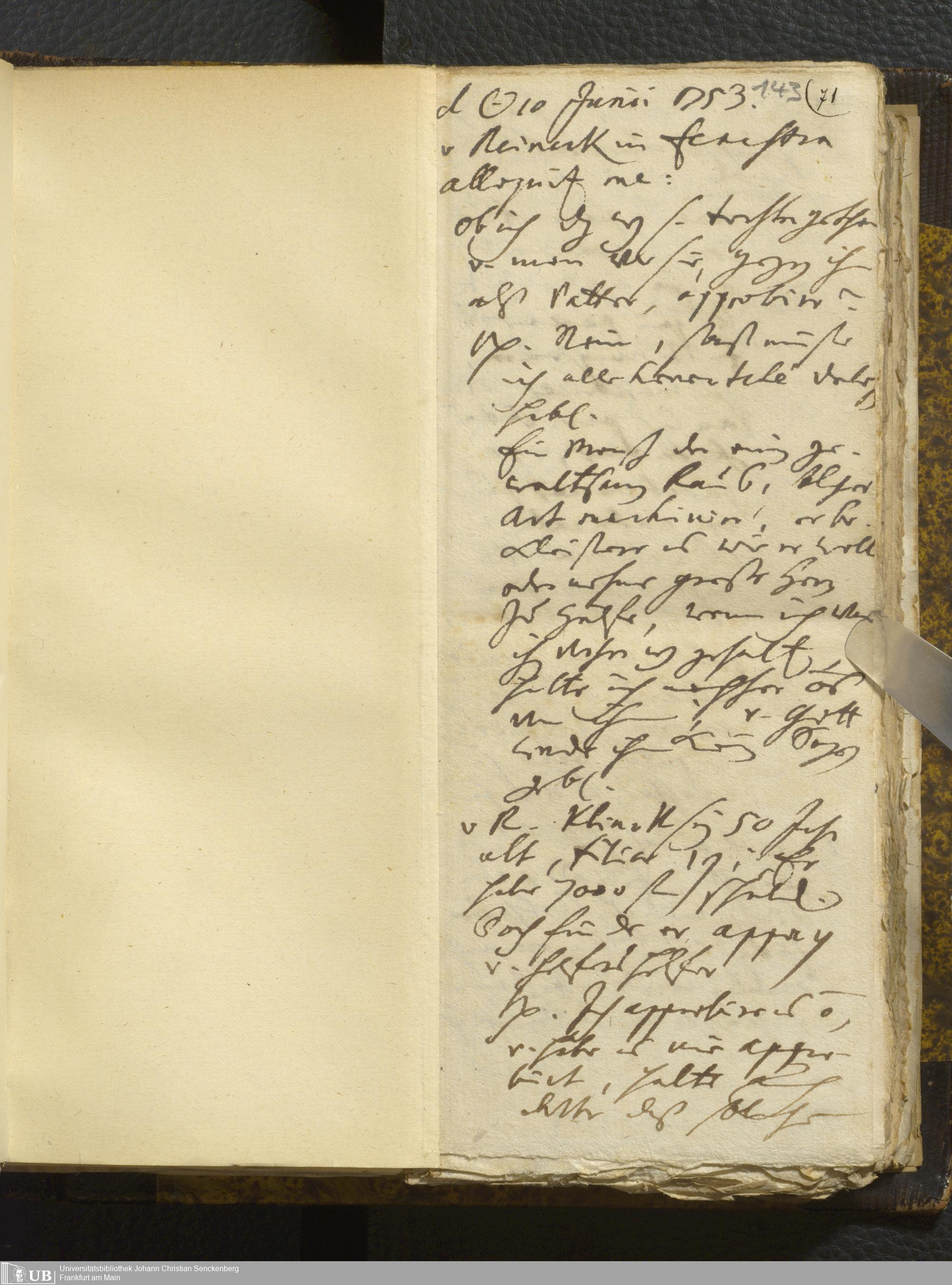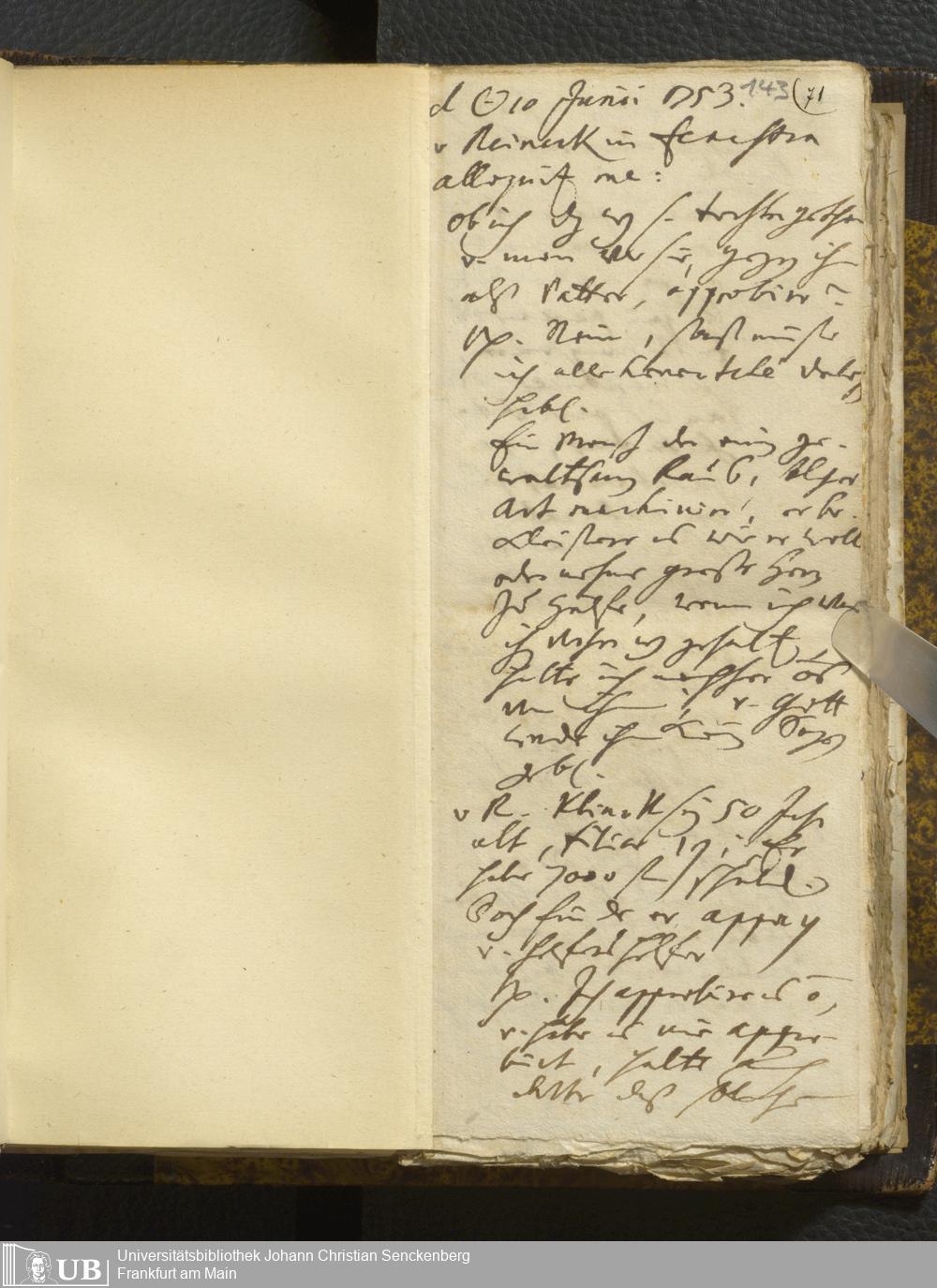 [Nicht-ärztliches Tagebuch: Juni - Dezember 1753]