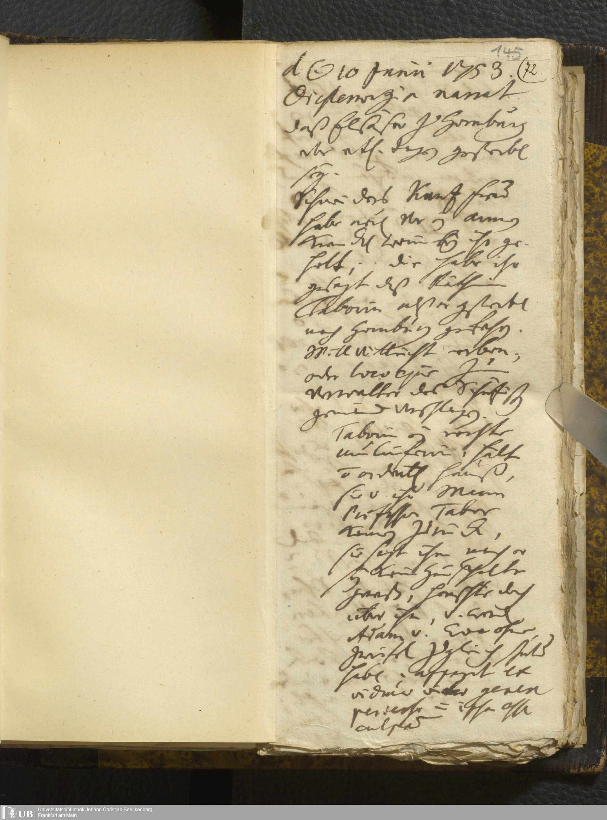 [Nicht-ärztliches Tagebuch: Juni - Dezember 1753]