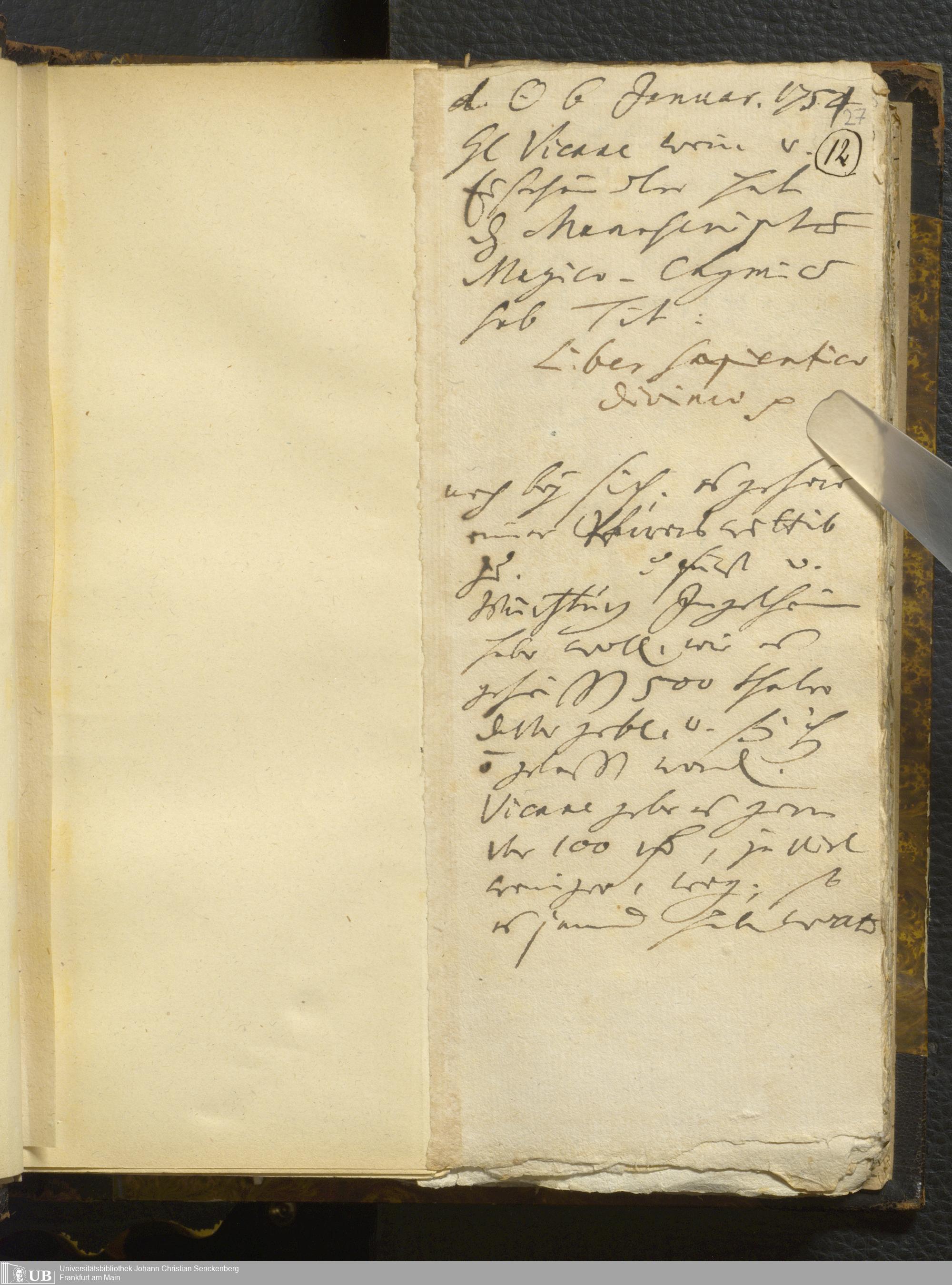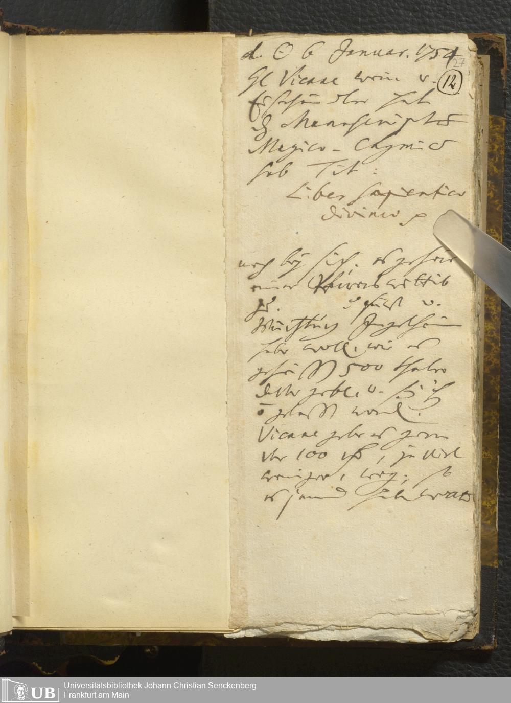 [Nicht-ärztliches Tagebuch: 1754]