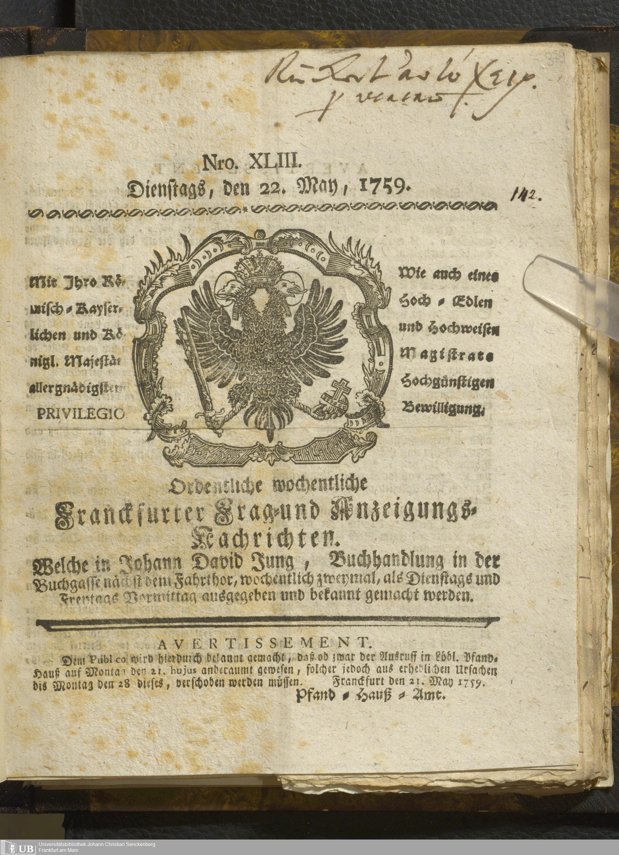 [Nicht-ärztliches Tagebuch: 1757 - 1759]