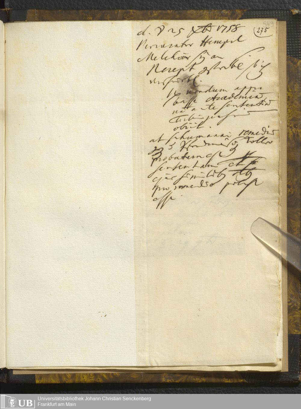 [Tagebücher Johann Christian Senckenberg (1707-1772)]