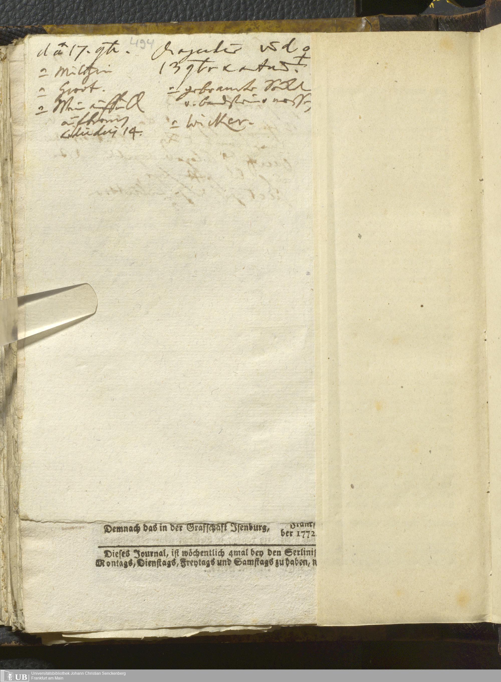 52 (1772) [Ärztliches und nicht-ärztliches Tagebuch: 1772 - Nov. 1772]