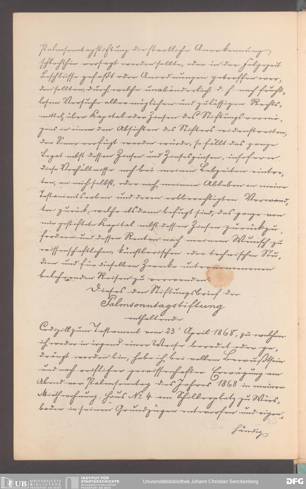 V48 Dr. Senckenbergische Stiftung, 12 - Errichtung und Verwaltung der Palmsonntag-Stiftung