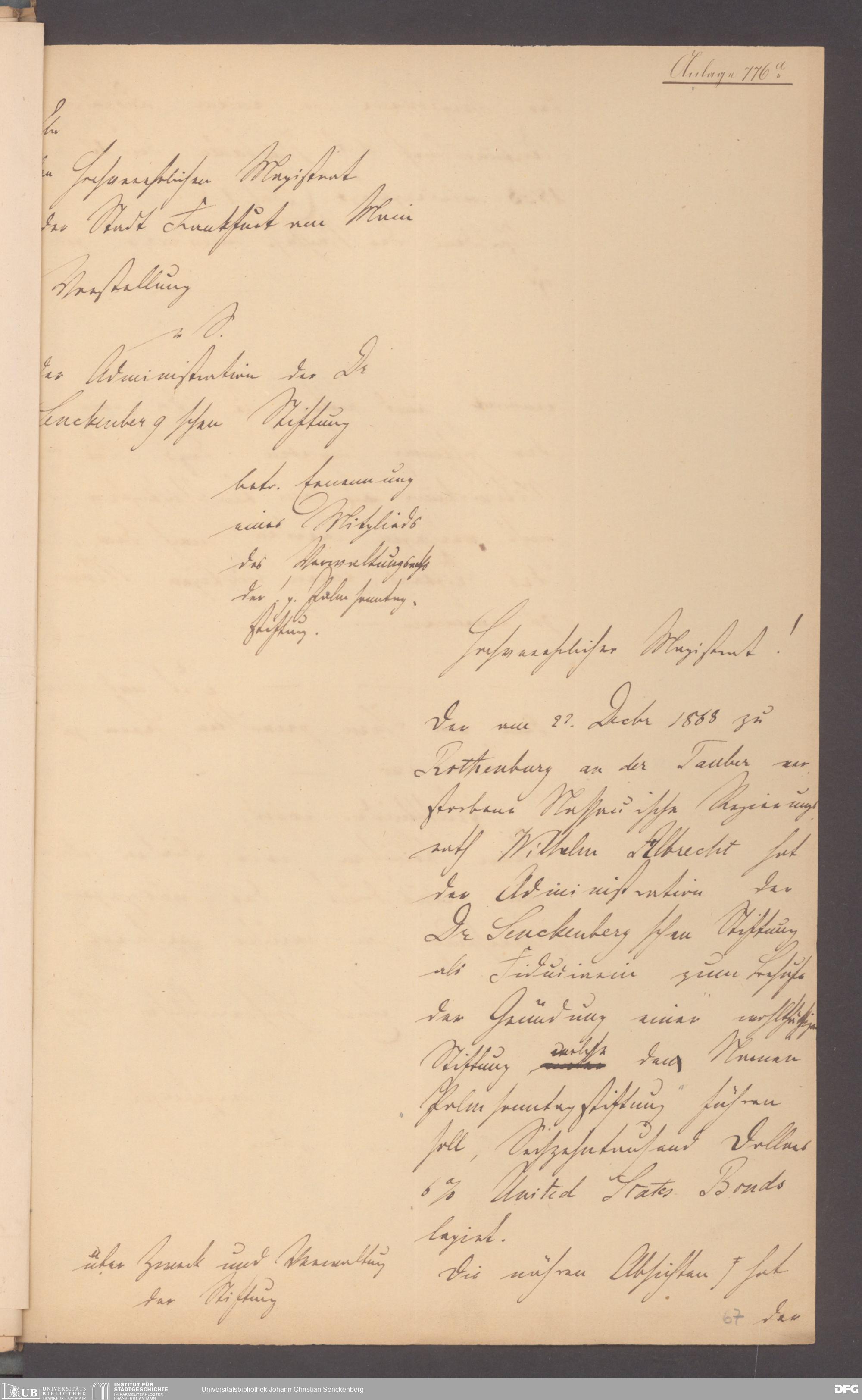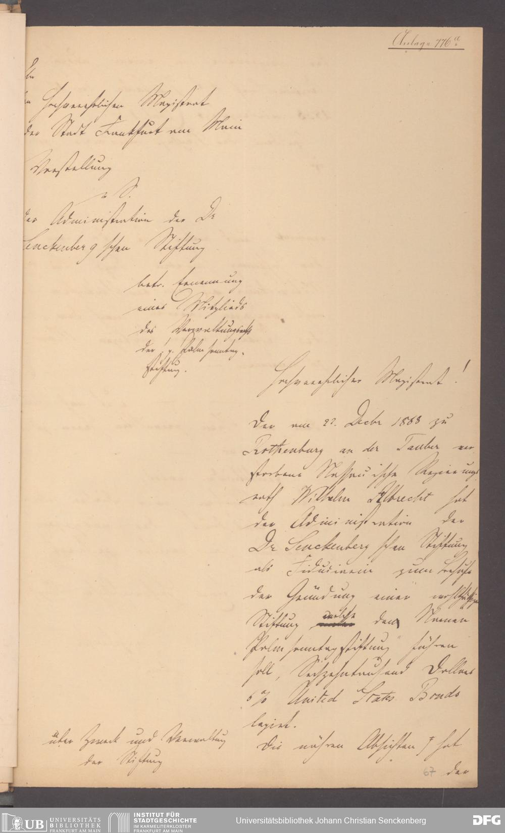 V48 Dr. Senckenbergische Stiftung, 12 - Errichtung und Verwaltung der Palmsonntag-Stiftung