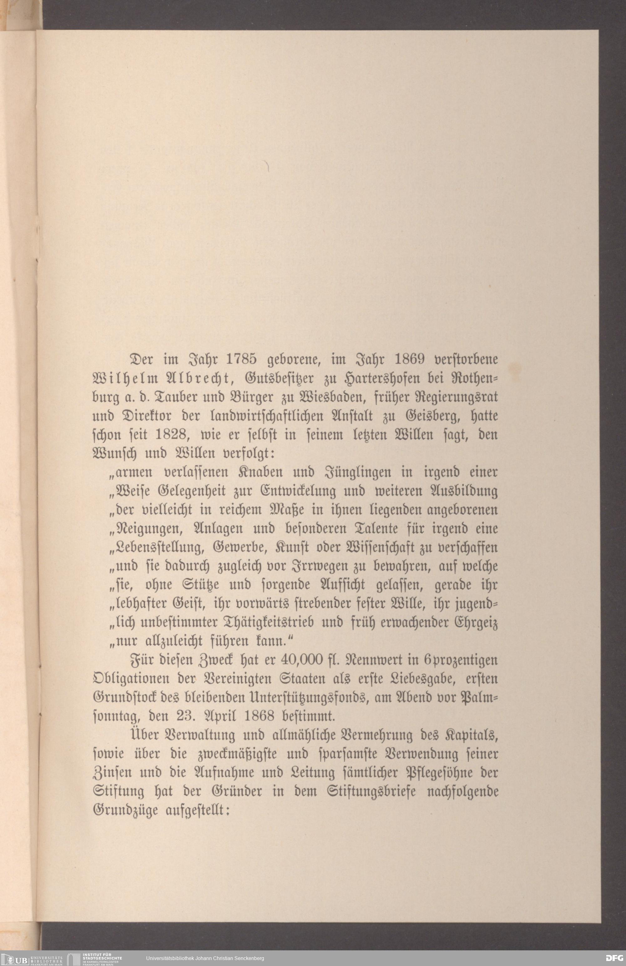 V48 Dr. Senckenbergische Stiftung, 12 - Errichtung und Verwaltung der Palmsonntag-Stiftung
