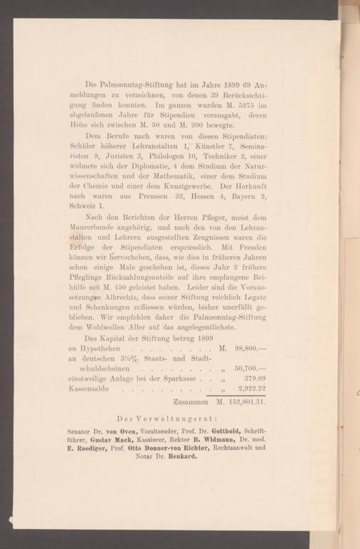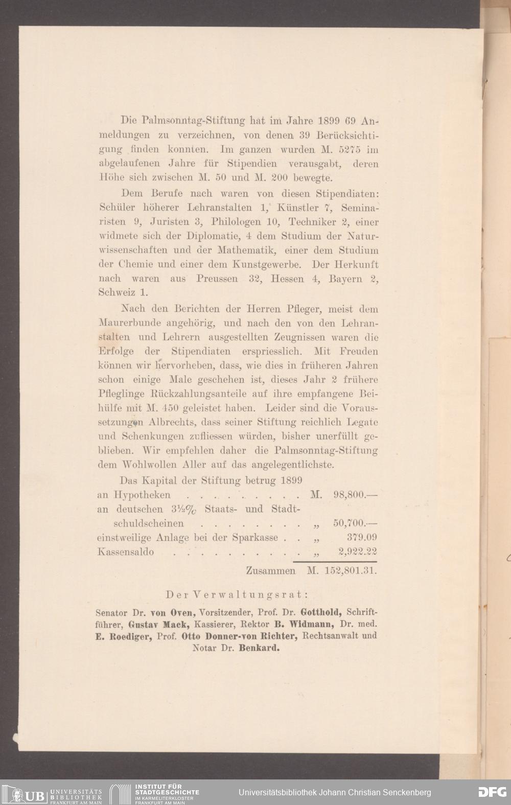 V48 Dr. Senckenbergische Stiftung, 12 - Errichtung und Verwaltung der Palmsonntag-Stiftung
