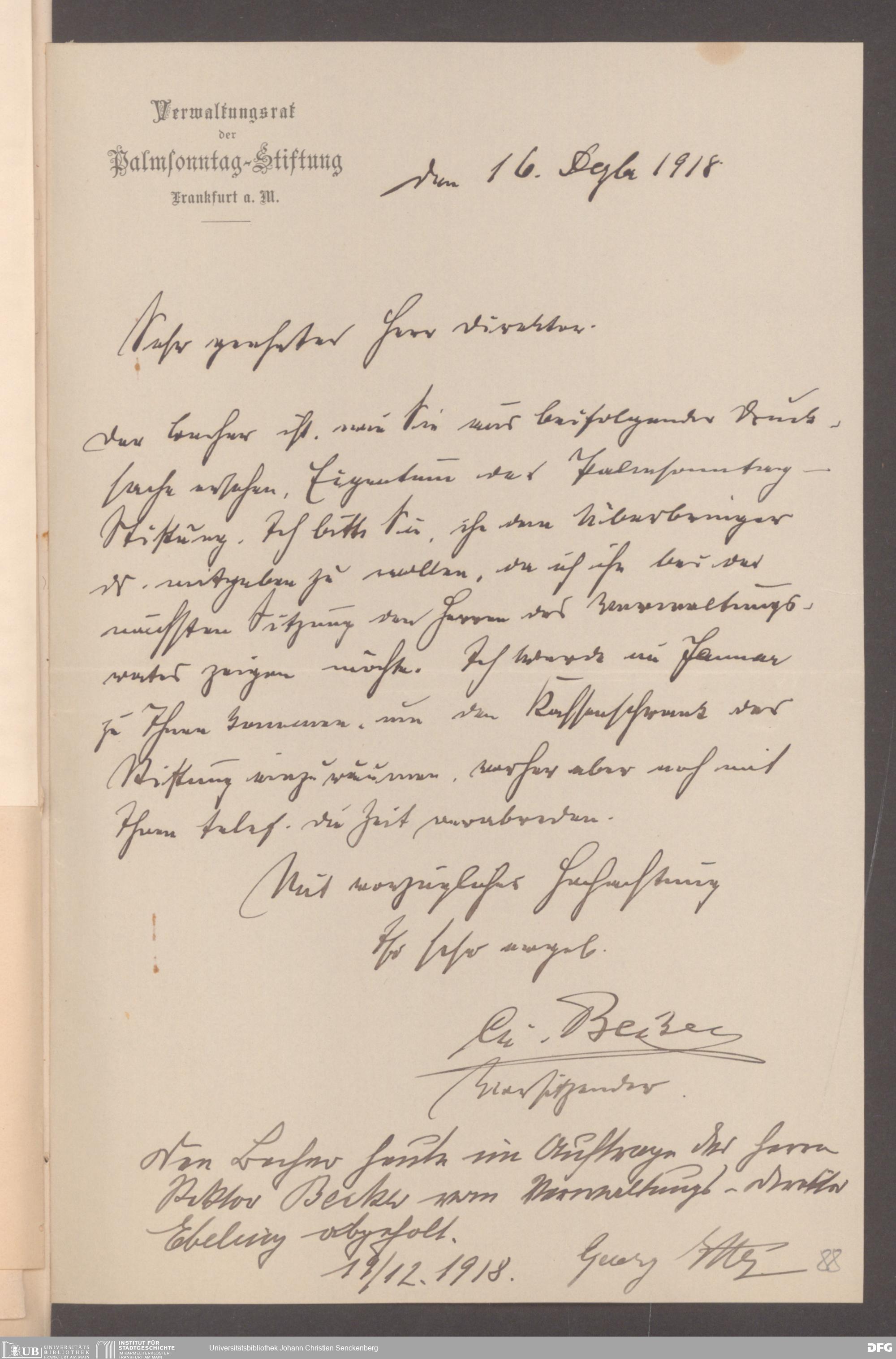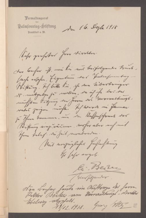 V48 Dr. Senckenbergische Stiftung, 12 - Errichtung und Verwaltung der Palmsonntag-Stiftung