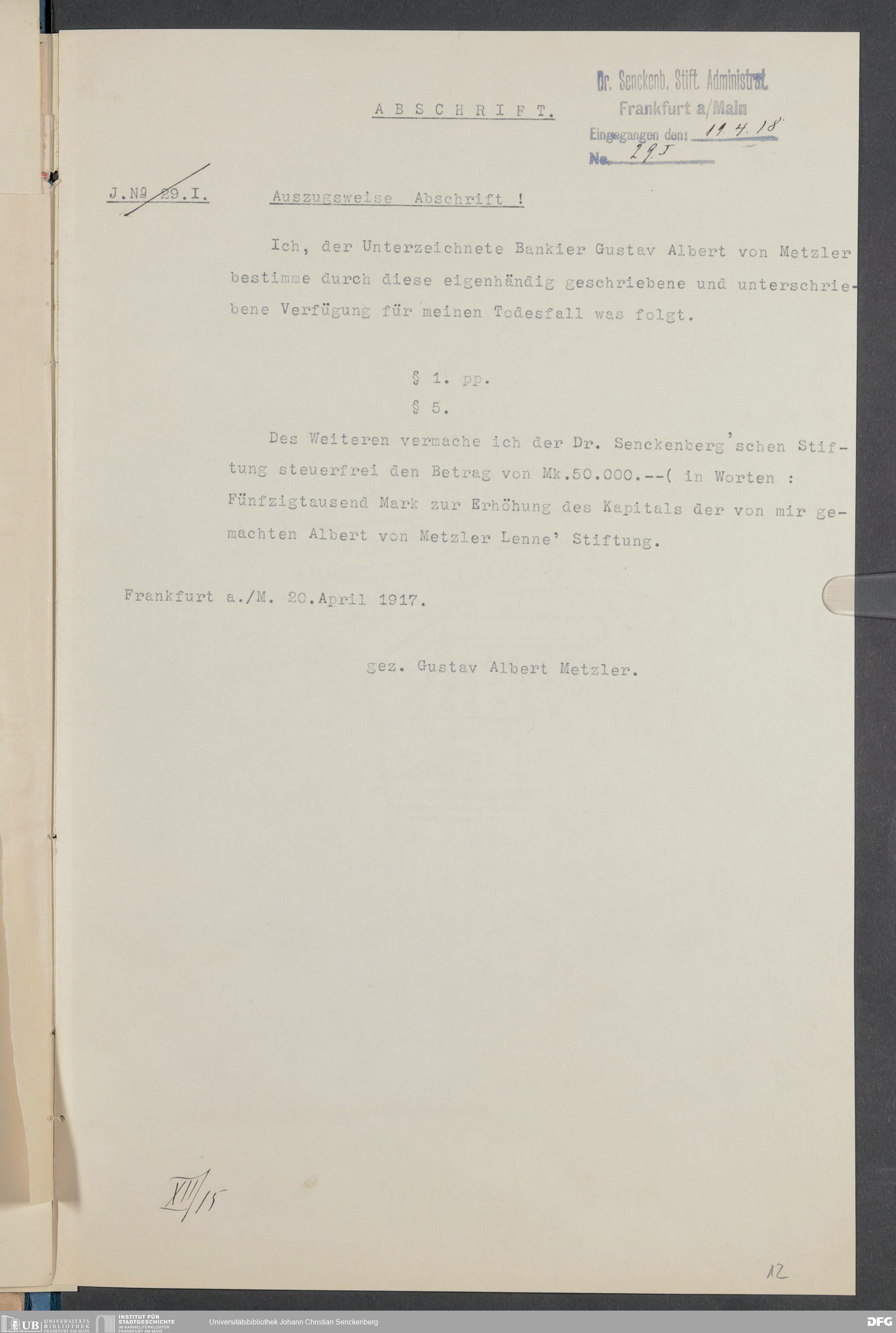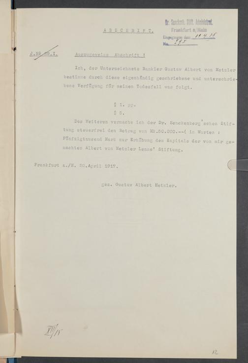 V48 Dr. Senckenbergische Stiftung, 14 - Albert von Metzler-Lemme-Stiftung