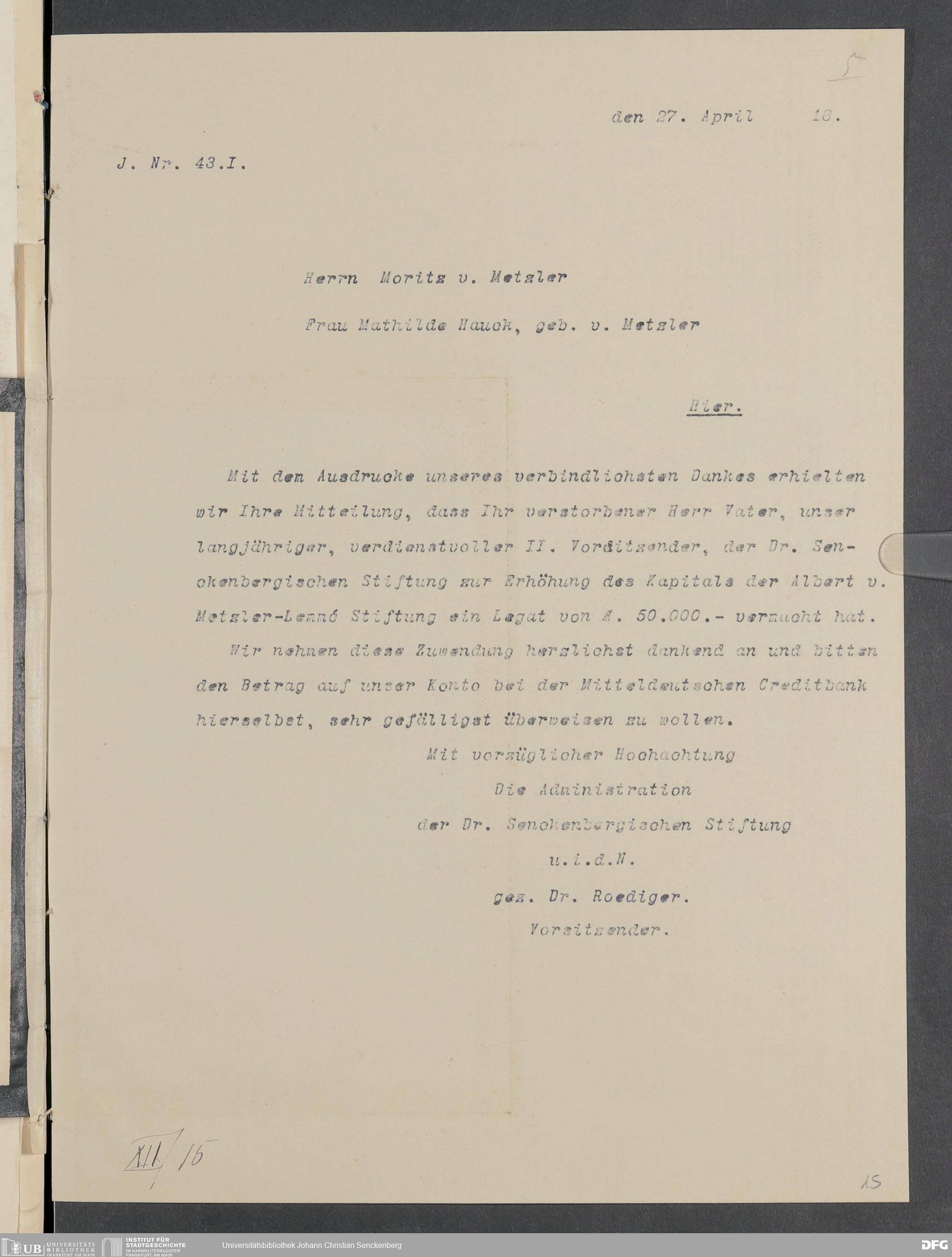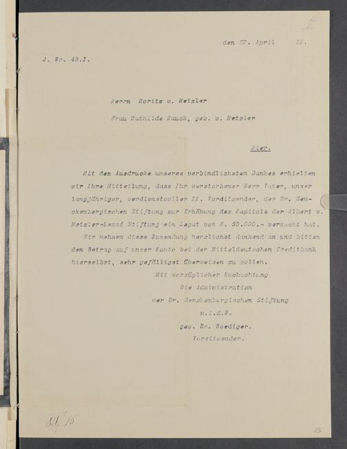 V48 Dr. Senckenbergische Stiftung, 14 - Albert von Metzler-Lemme-Stiftung