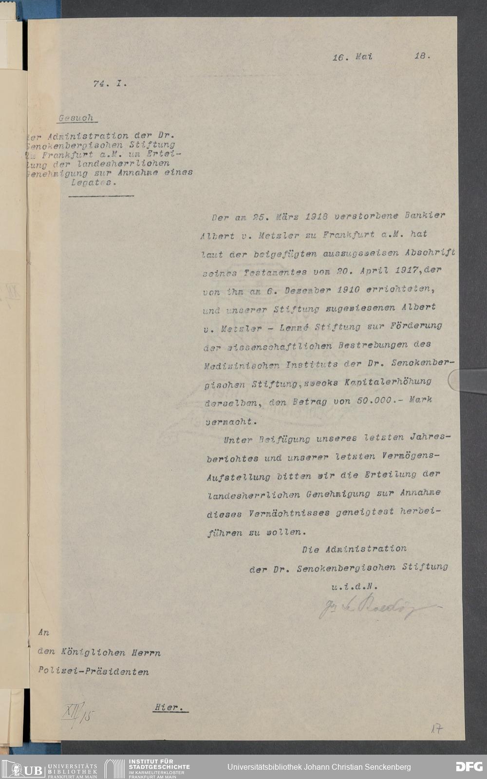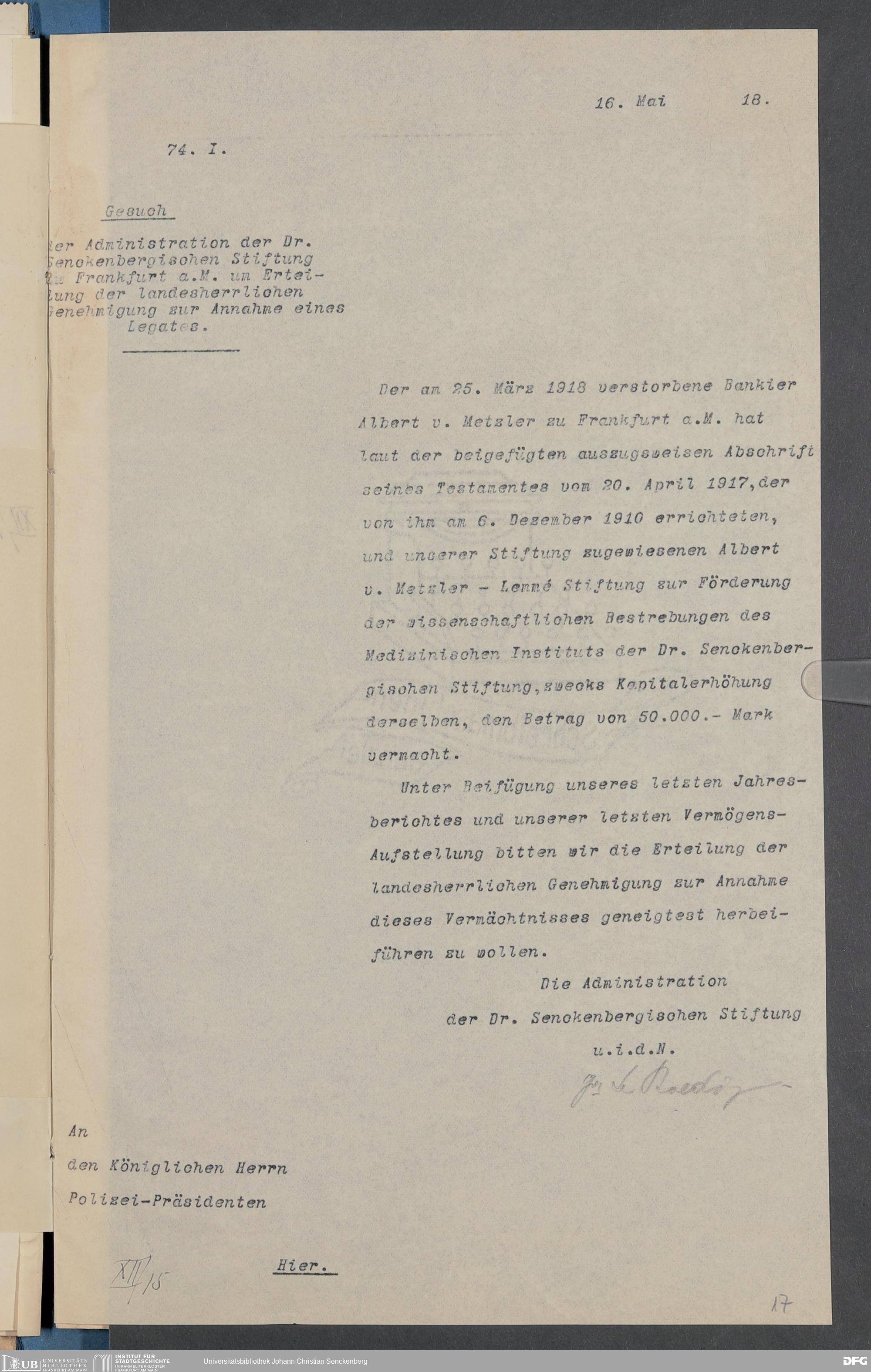 V48 Dr. Senckenbergische Stiftung, 14 - Albert von Metzler-Lemme-Stiftung