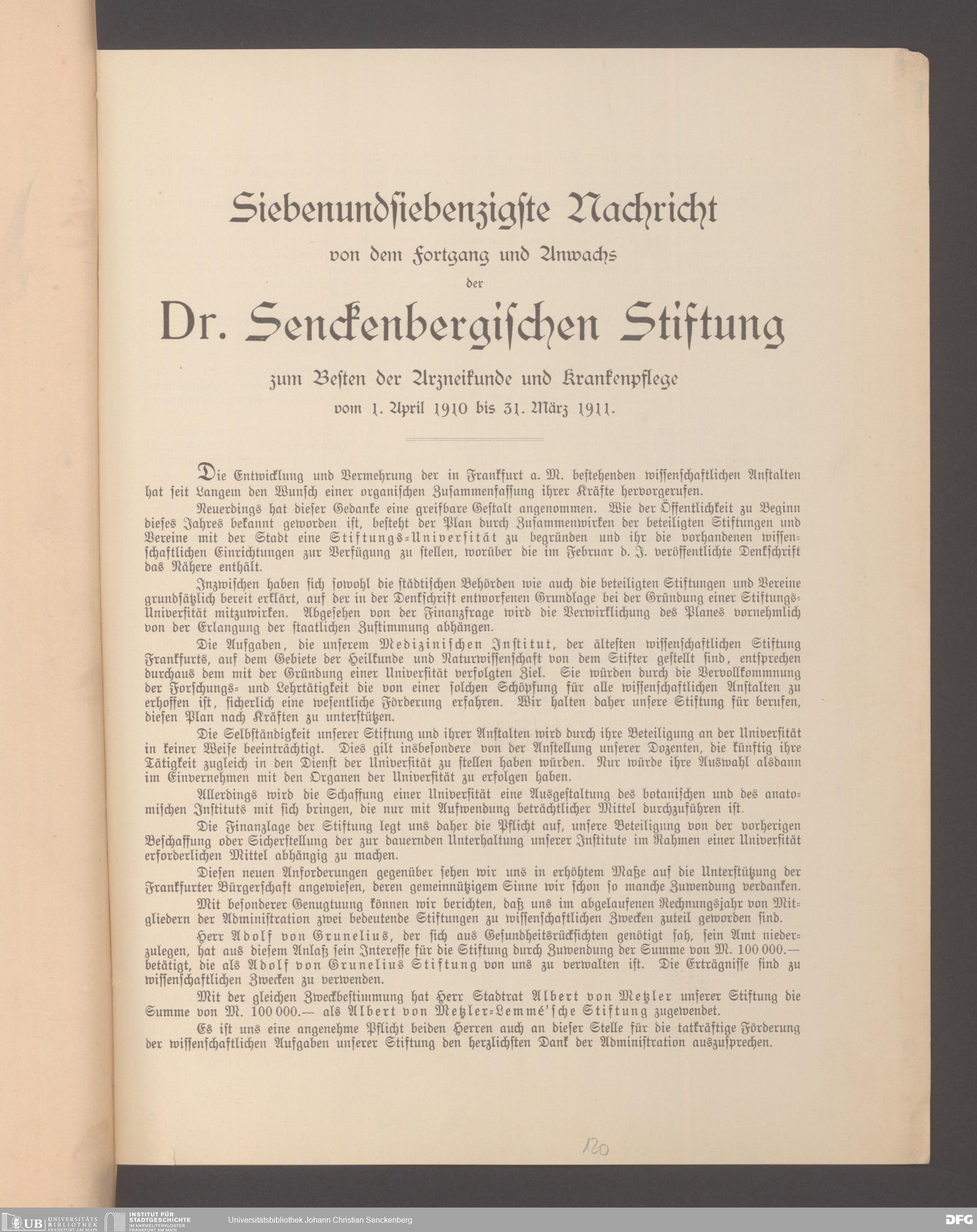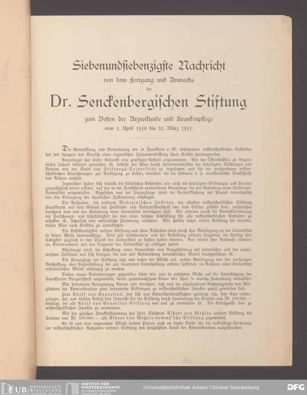 V48 Dr. Senckenbergische Stiftung, 17 - Jahresberichte