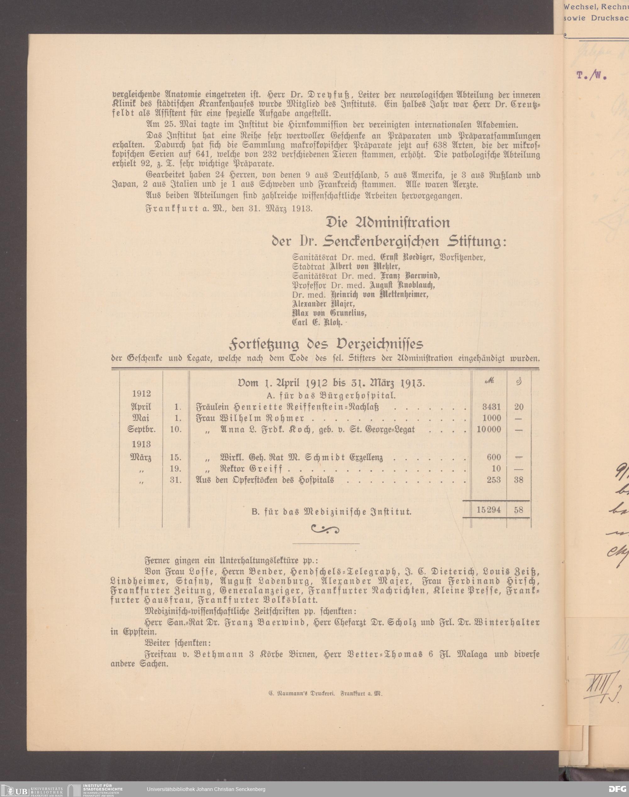 V48 Dr. Senckenbergische Stiftung, 17 - Jahresberichte