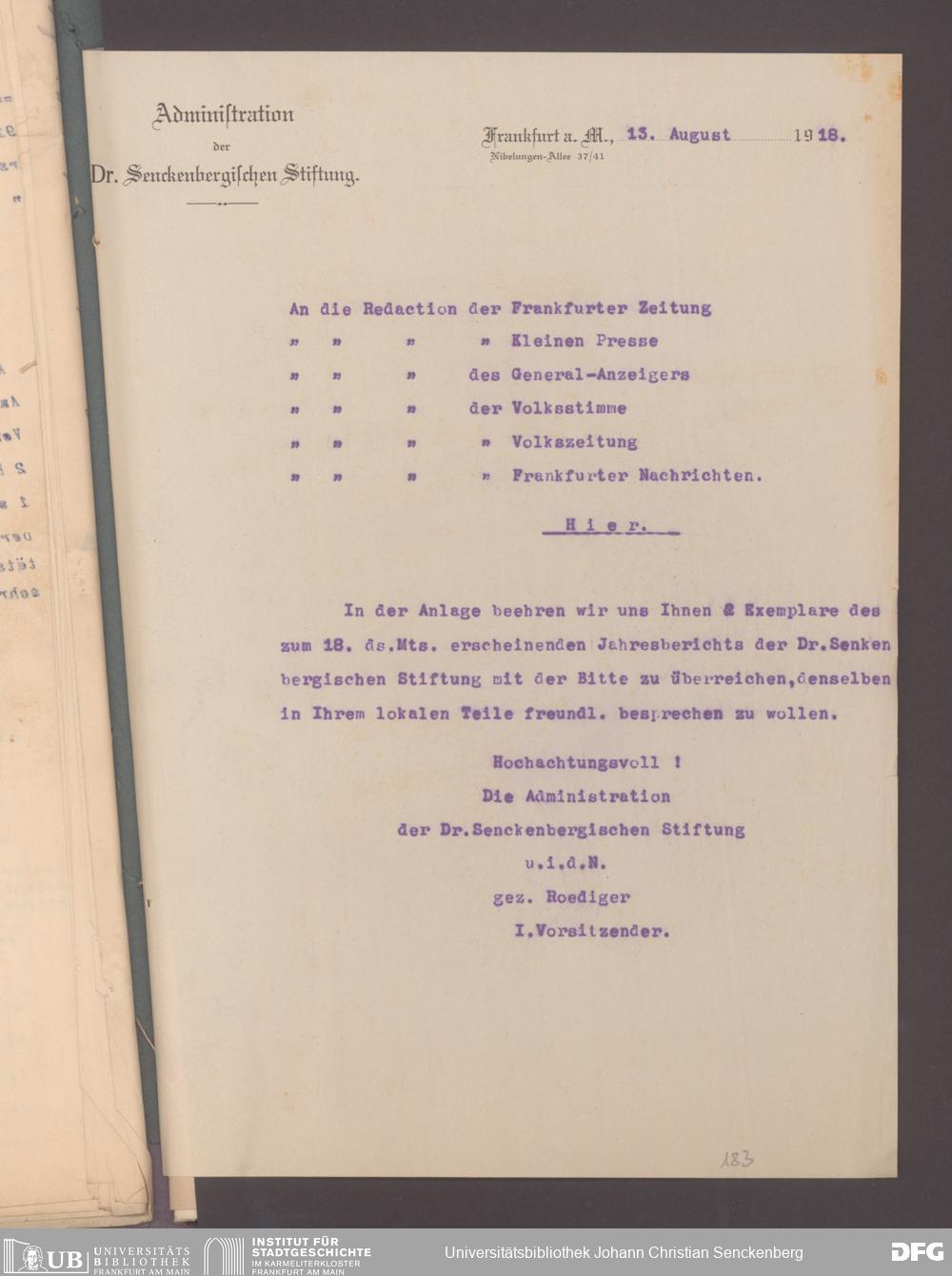 V48 Dr. Senckenbergische Stiftung, 17 - Jahresberichte