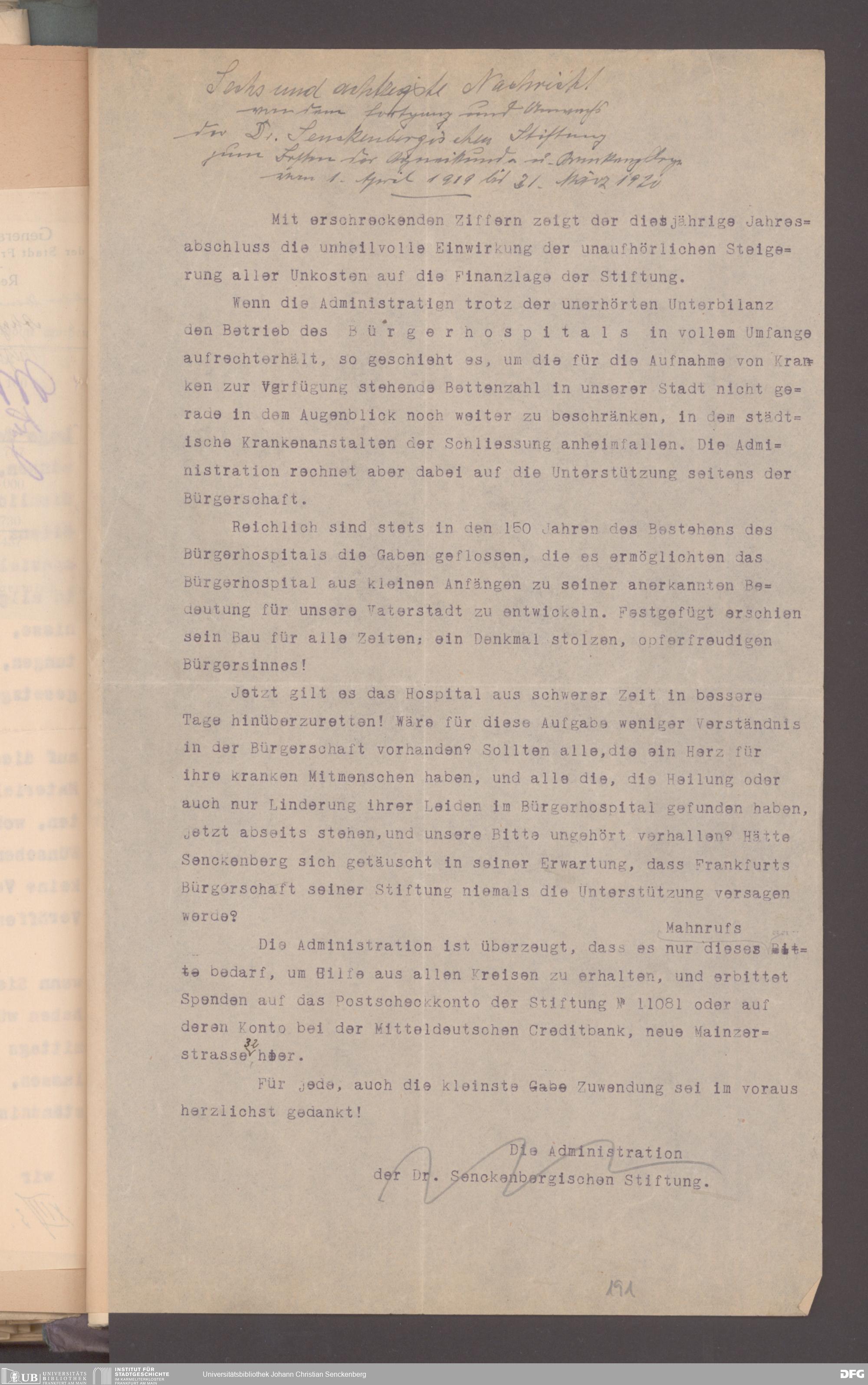 V48 Dr. Senckenbergische Stiftung, 17 - Jahresberichte