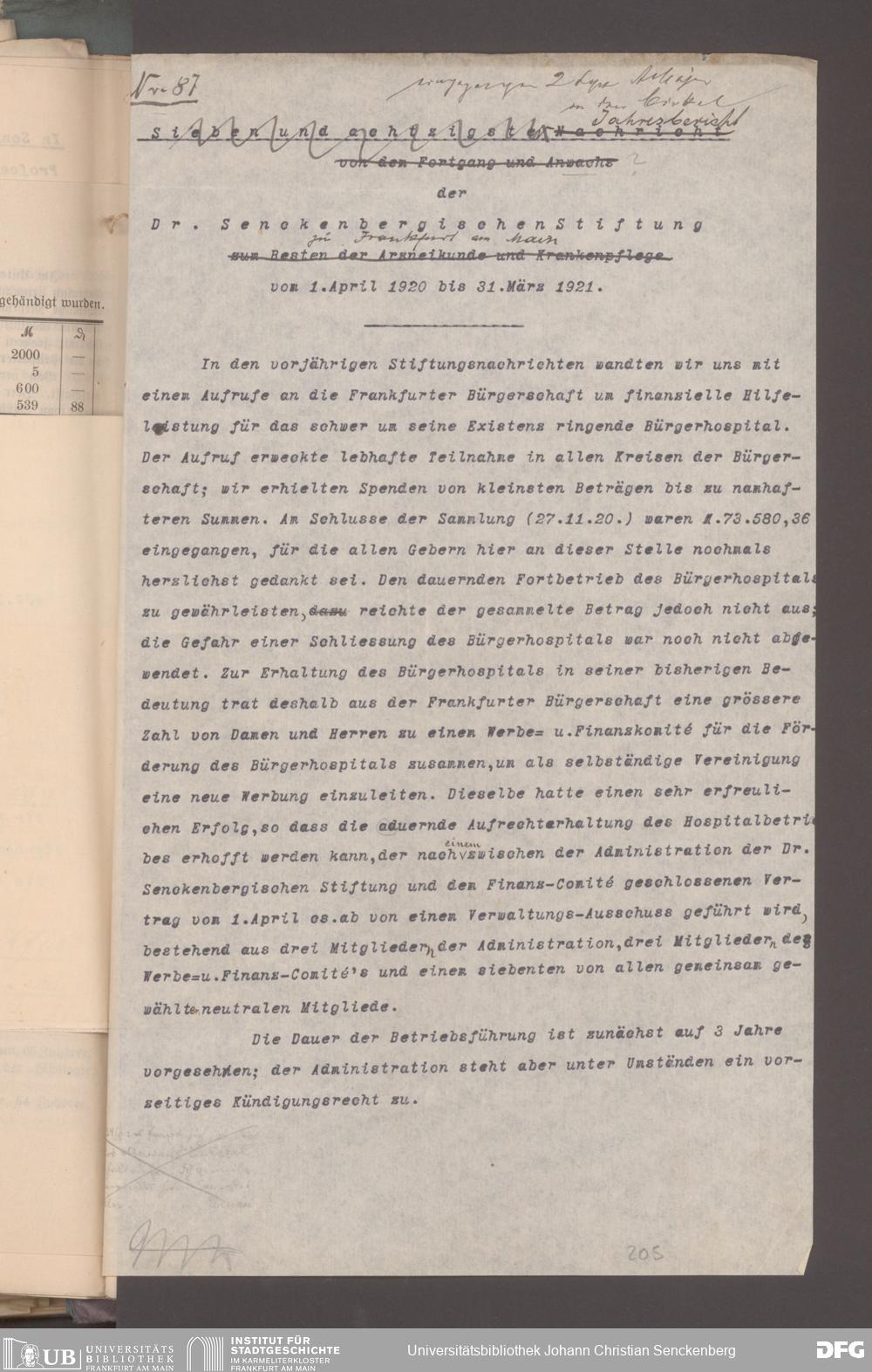 V48 Dr. Senckenbergische Stiftung, 17 - Jahresberichte