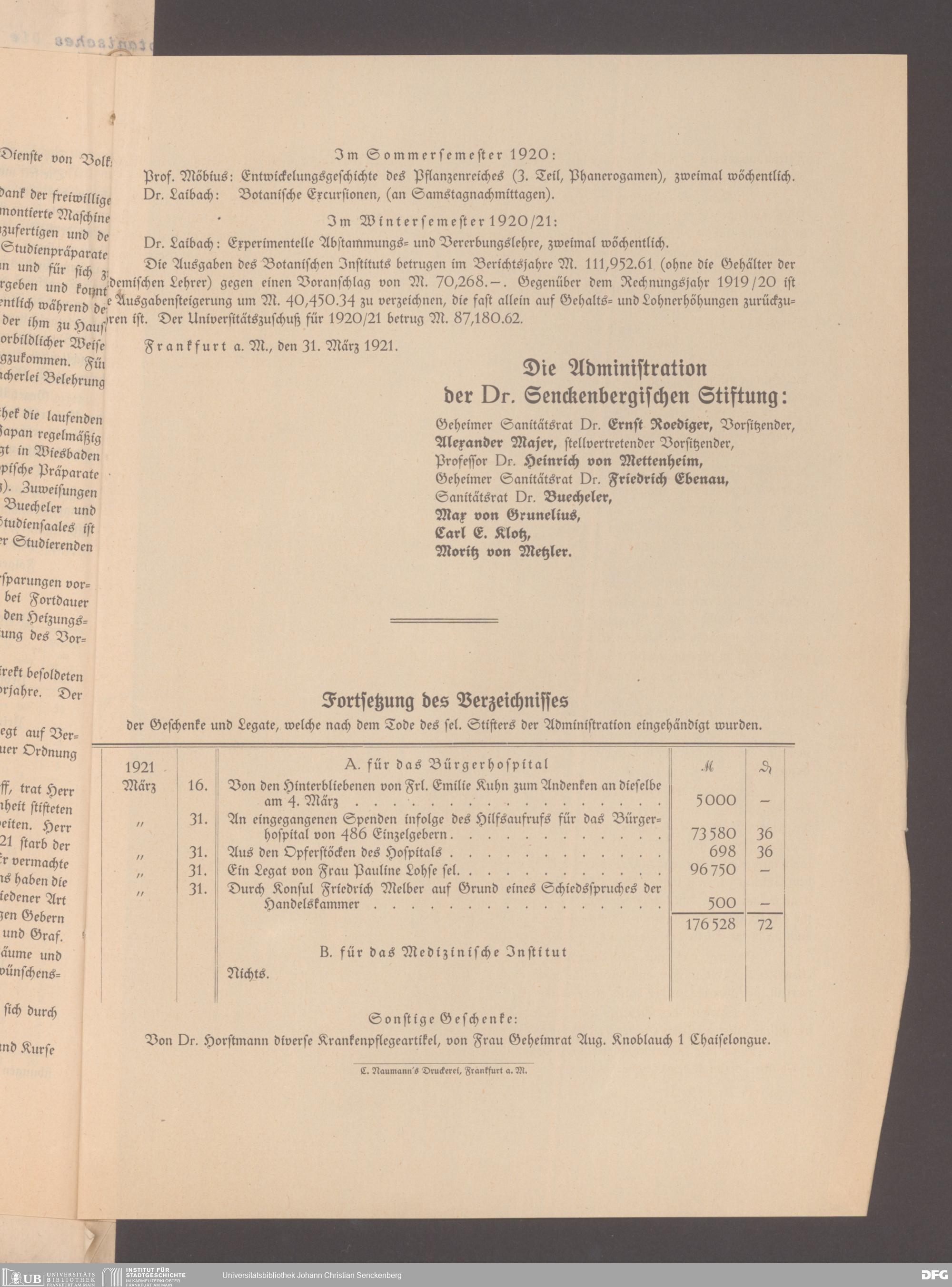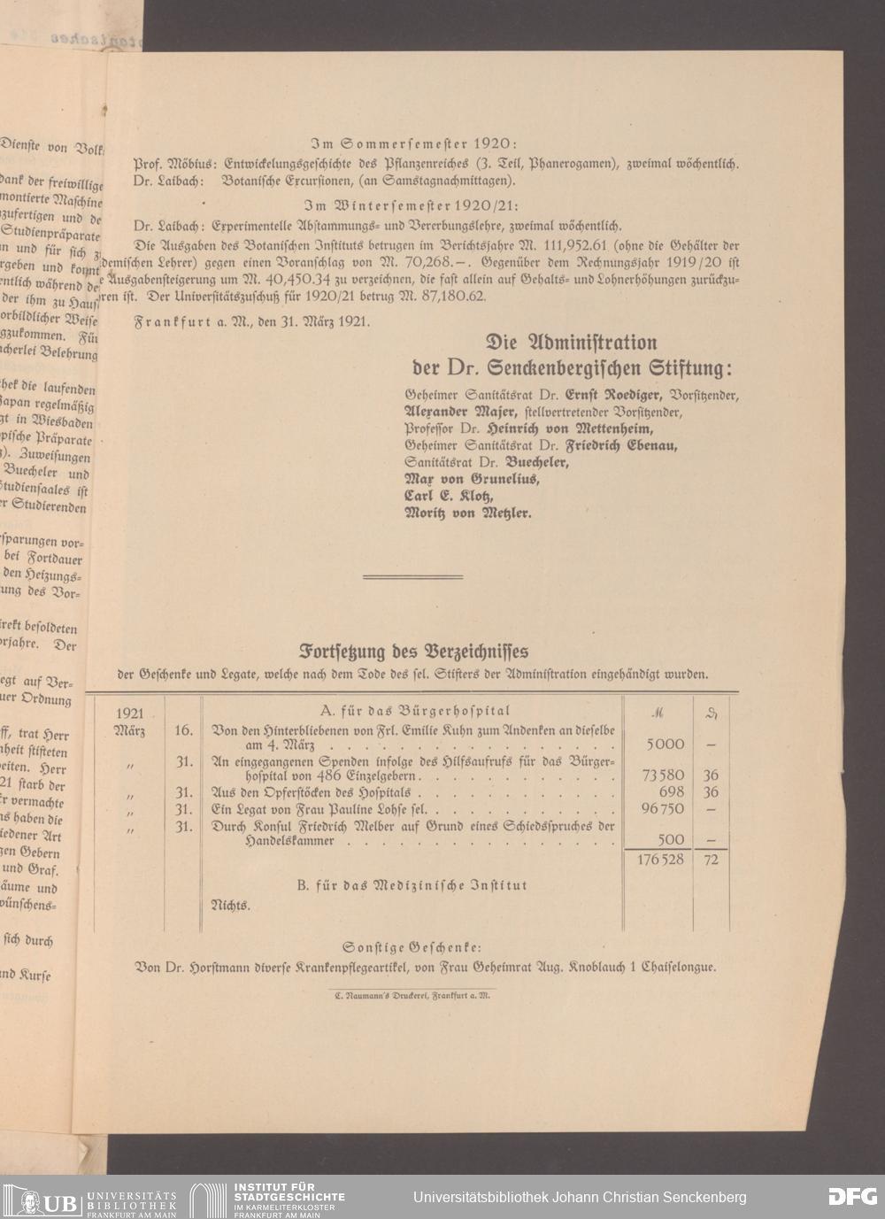 V48 Dr. Senckenbergische Stiftung, 17 - Jahresberichte