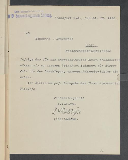 V48 Dr. Senckenbergische Stiftung, 18 - Entwürfe für die Jahresberichte Nr. 88 und 91