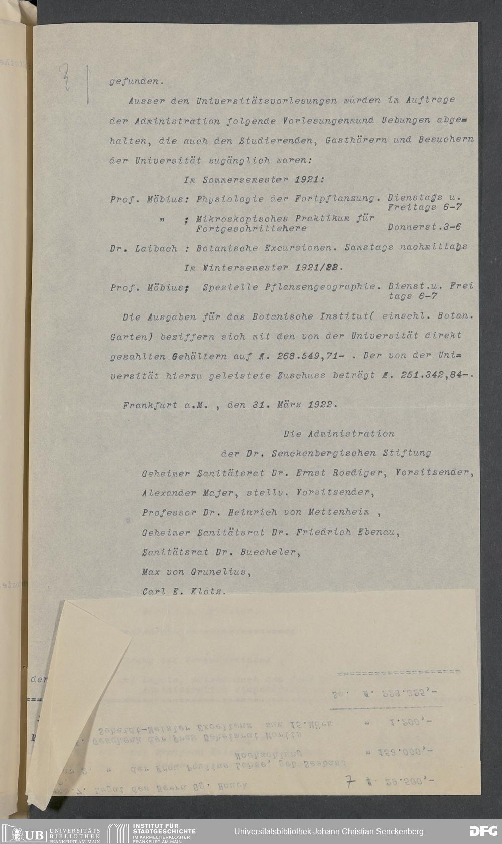 V48 Dr. Senckenbergische Stiftung, 18 - Entwürfe für die Jahresberichte Nr. 88 und 91