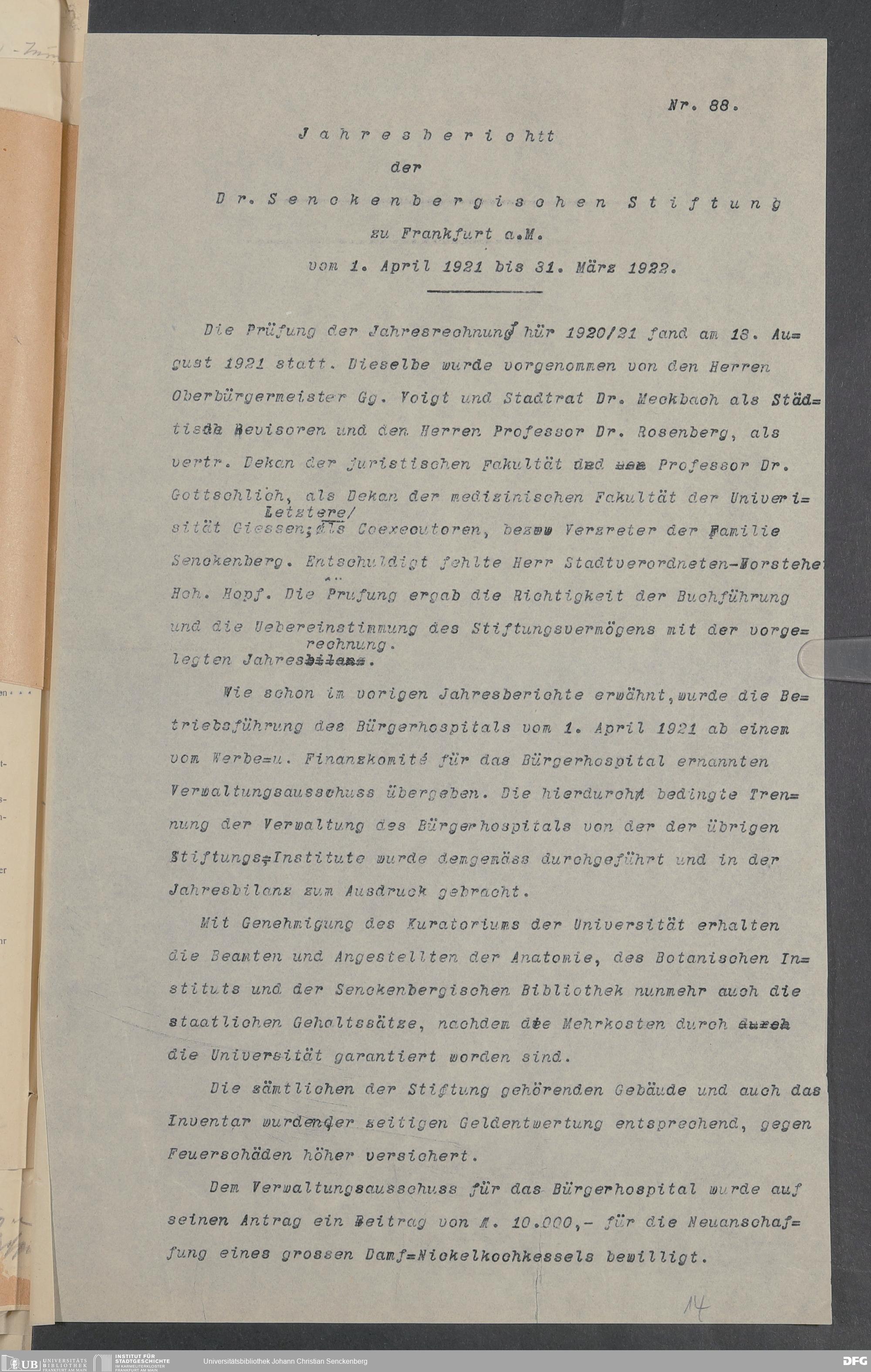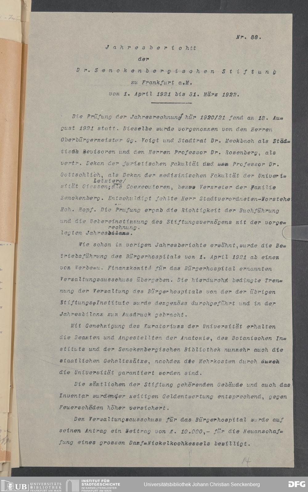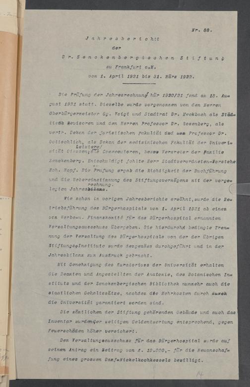 V48 Dr. Senckenbergische Stiftung, 18 - Entwürfe für die Jahresberichte Nr. 88 und 91