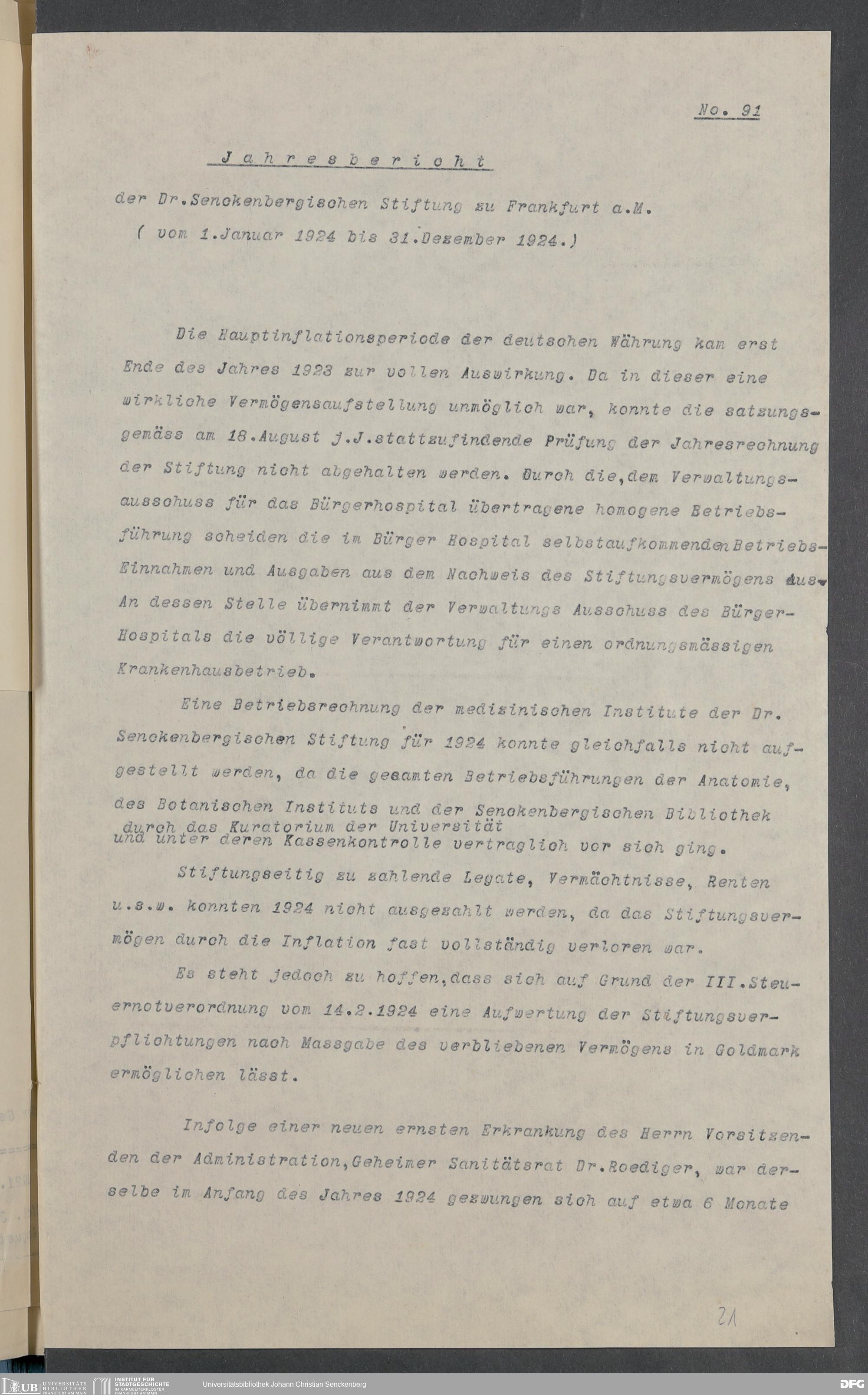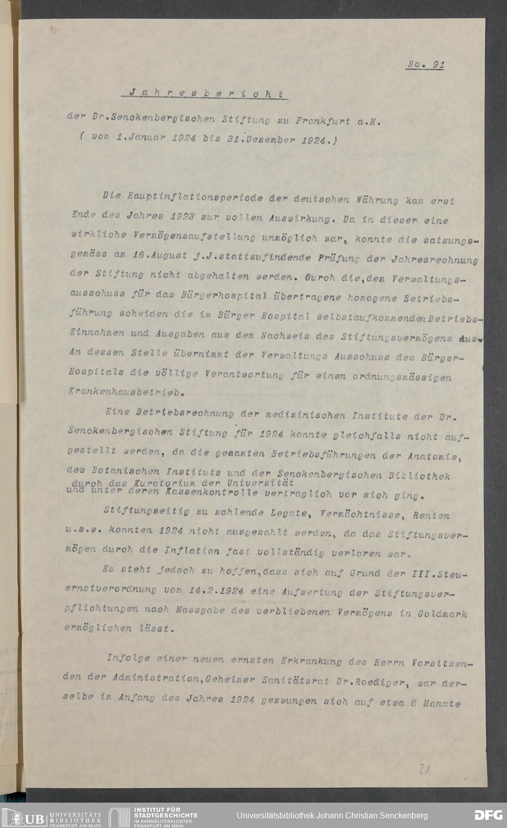 V48 Dr. Senckenbergische Stiftung, 18 - Entwürfe für die Jahresberichte Nr. 88 und 91