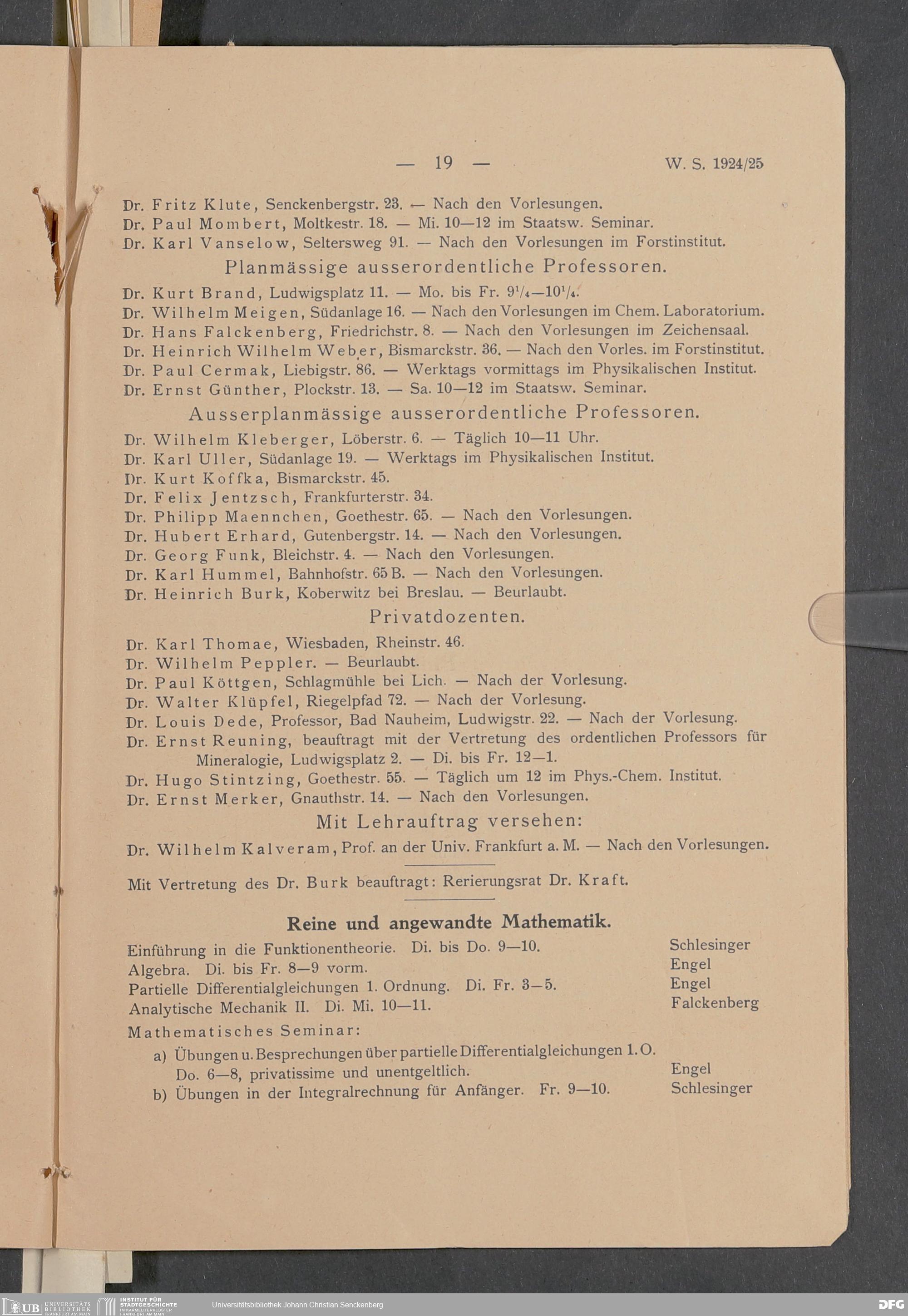 Nachlass Georg Kloss
