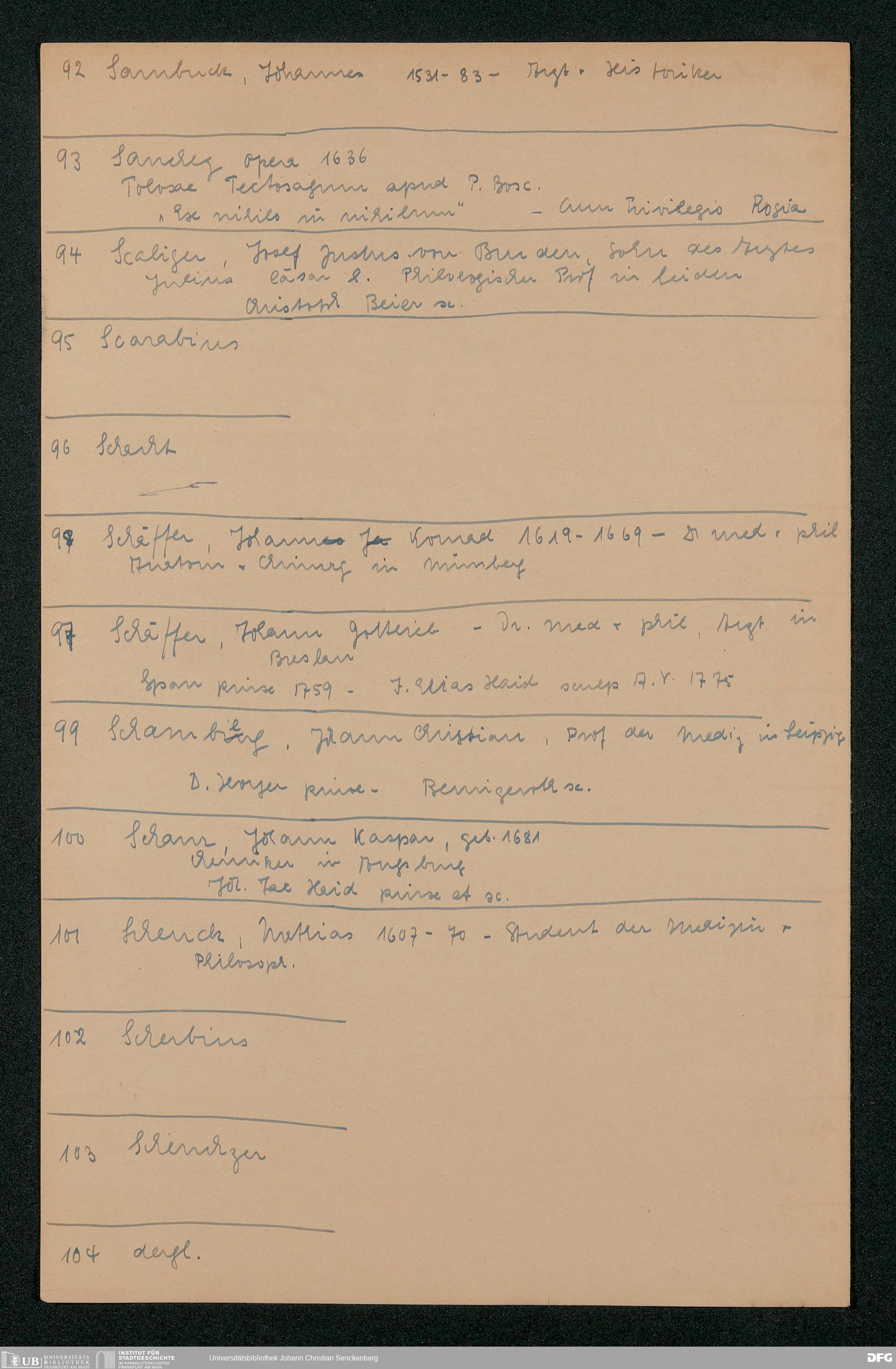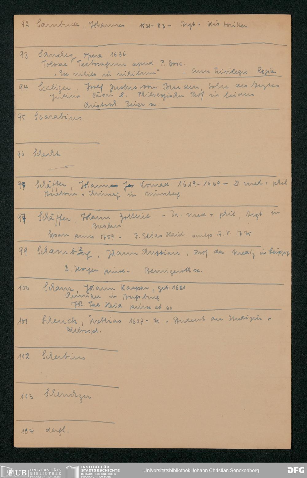 Nachlass Johann Christian Senckenberg