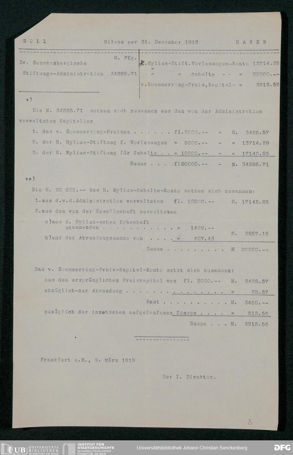 V48 Dr. Senckenbergische Stiftung, 28 - Von der Senckenberg-Stiftung verwaltete Kapitalien