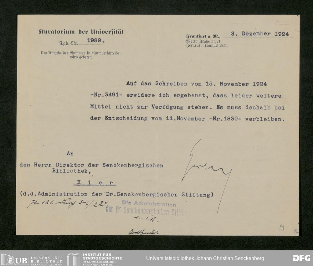 V48 Dr. Senckenbergische Stiftung, 30 - ... Bibliothek (Unterlagen von Ernst Roediger), Bd. 3