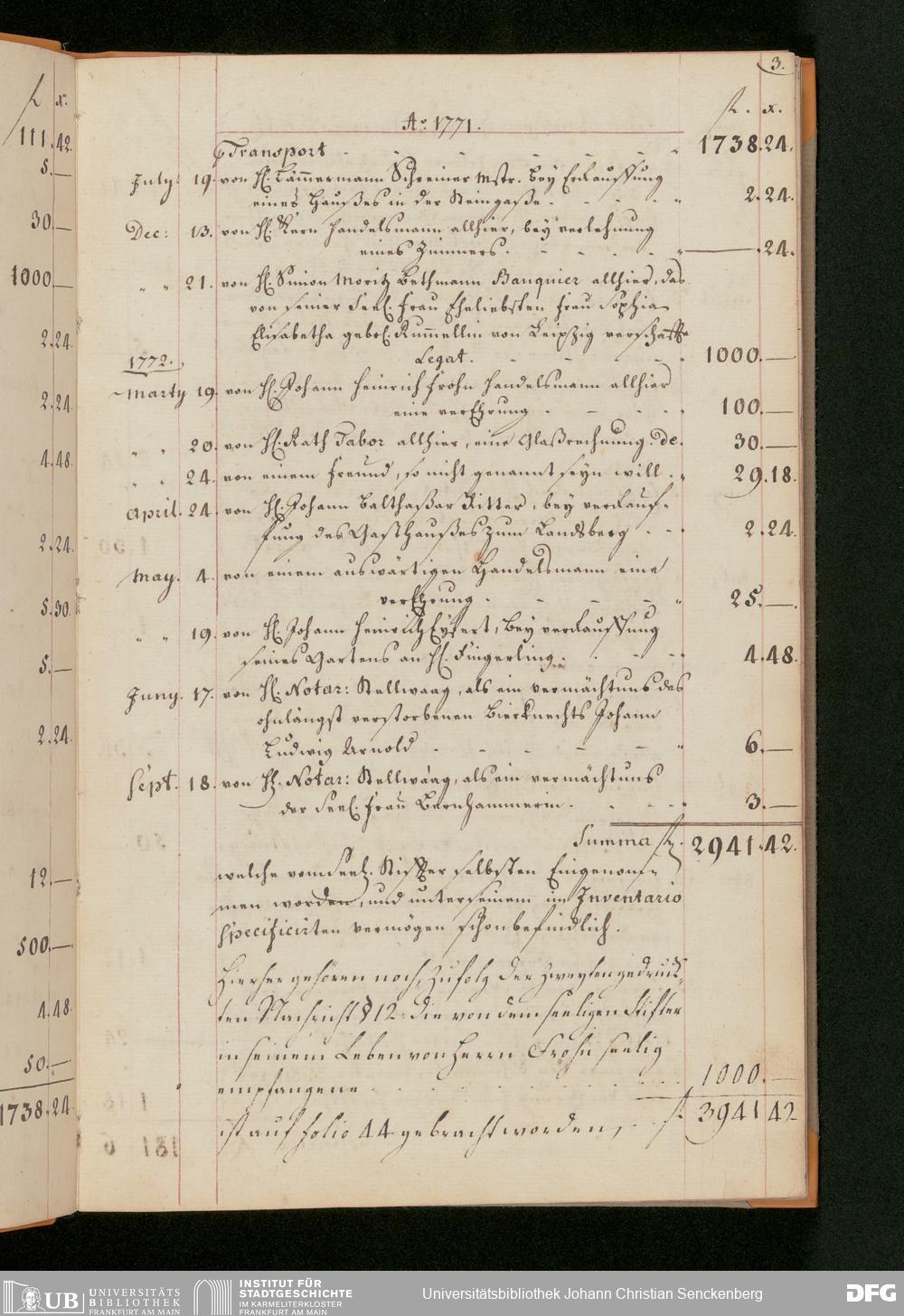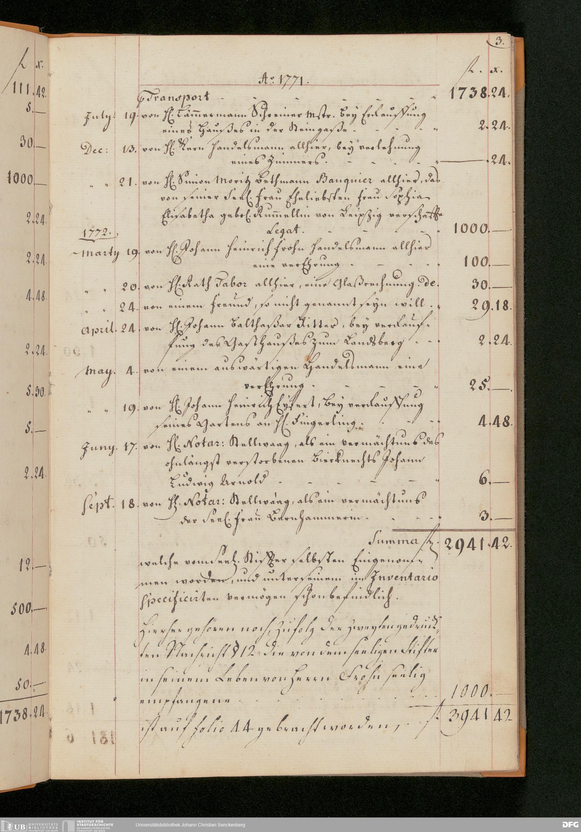 V48 Dr. Senckenbergische Stiftung, 51 - "Einnahm-Buch von Legaten, Gottes-Pfeninge und Verehrungen zum Senckenbergischen Stifft und Burger Hospithal"
