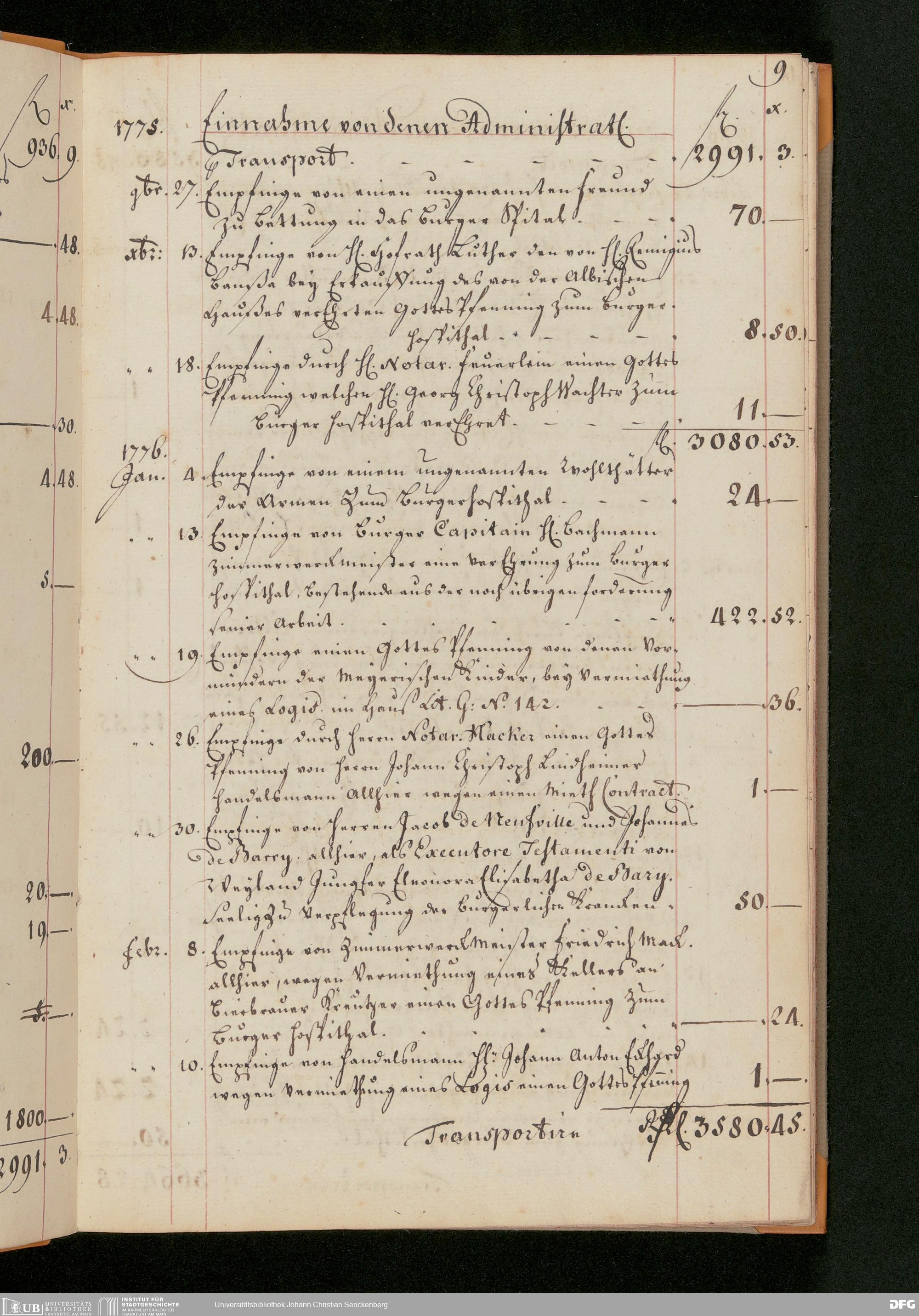 V48 Dr. Senckenbergische Stiftung, 51 - "Einnahm-Buch von Legaten, Gottes-Pfeninge und Verehrungen zum Senckenbergischen Stifft und Burger Hospithal"