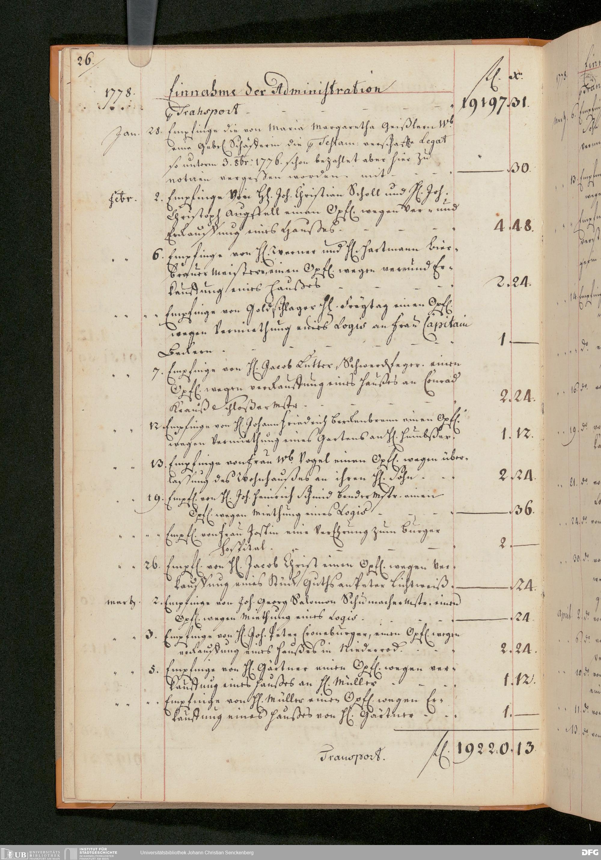 V48 Dr. Senckenbergische Stiftung, 51 - "Einnahm-Buch von Legaten, Gottes-Pfeninge und Verehrungen zum Senckenbergischen Stifft und Burger Hospithal"